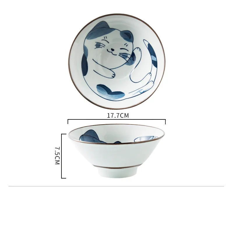 Cute Cat Ceramic Tableware 7 Inch Ramen Bowl Soup Bowl Fruit Salad Noodle Bowl