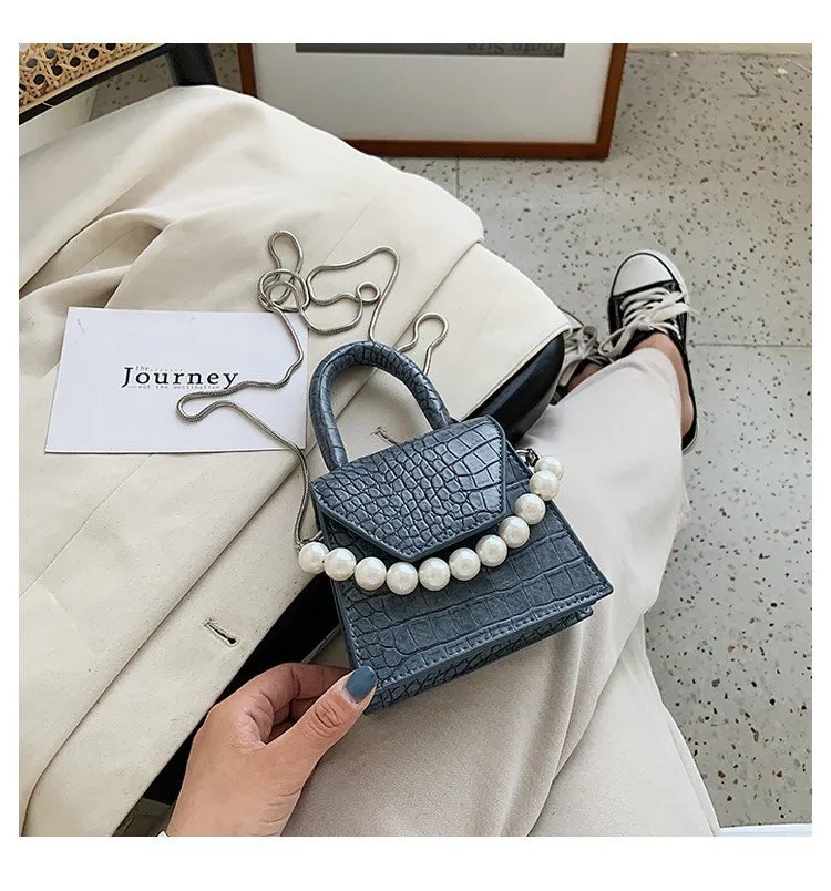 Elegant Pearl Detailing: The mini pouch is adorned with glistening pearl accents that