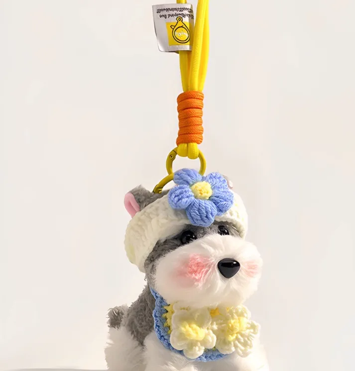 🐶 Cute Plush Puppy Schnauzer Doll – Adorable Bag Pendant