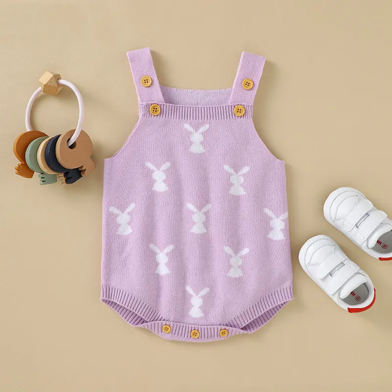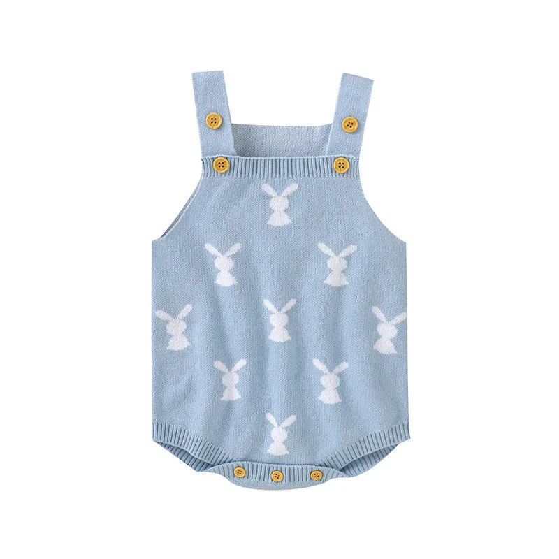 Adorable Rabbit Jacquard Design: The romper features a cute rabbit jacquard pattern, adding a playful touch to your baby’s