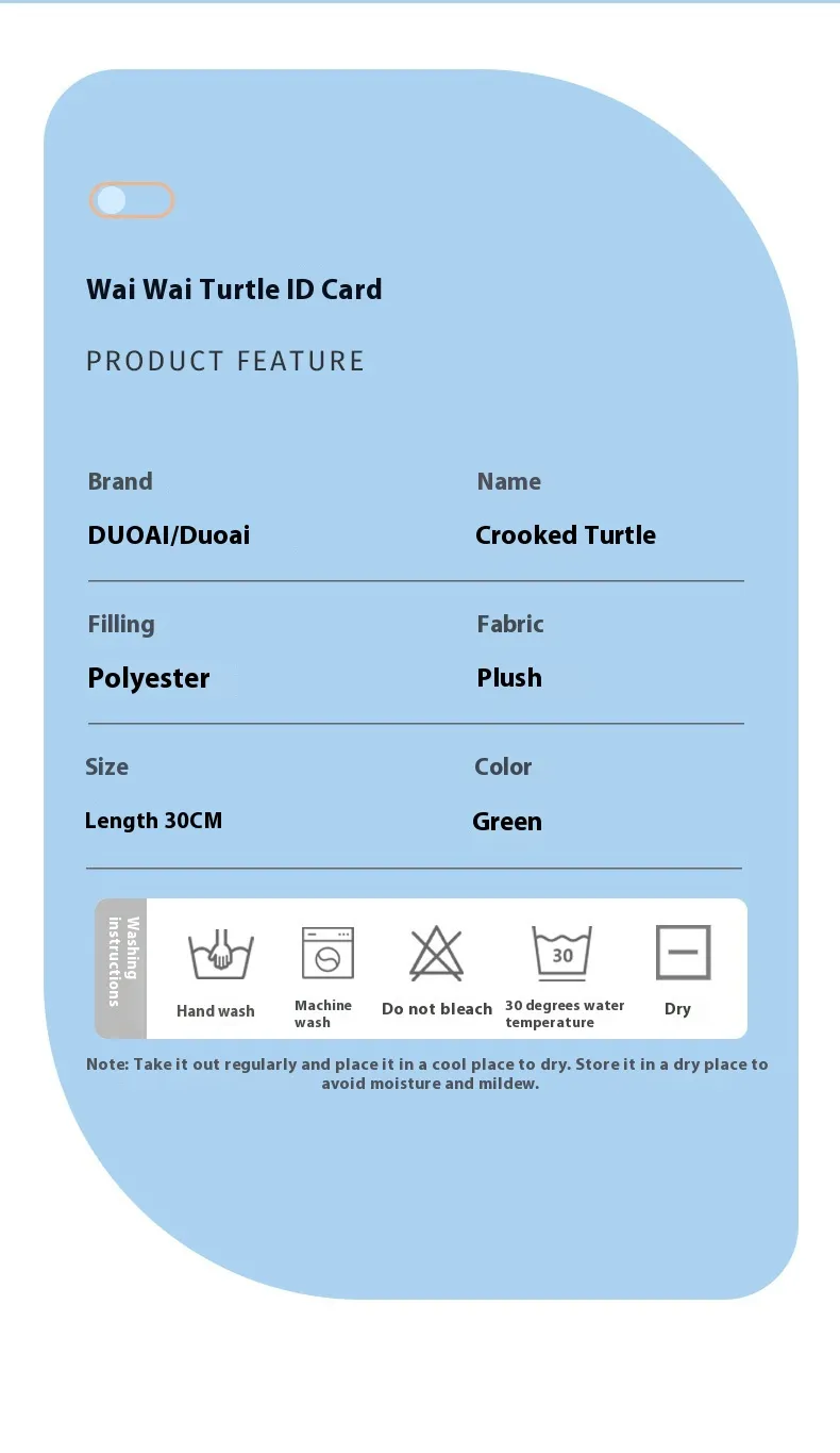 A: This plush turtle is available in 30cm, 50cm, 80cm, and 100cm+ sizes.