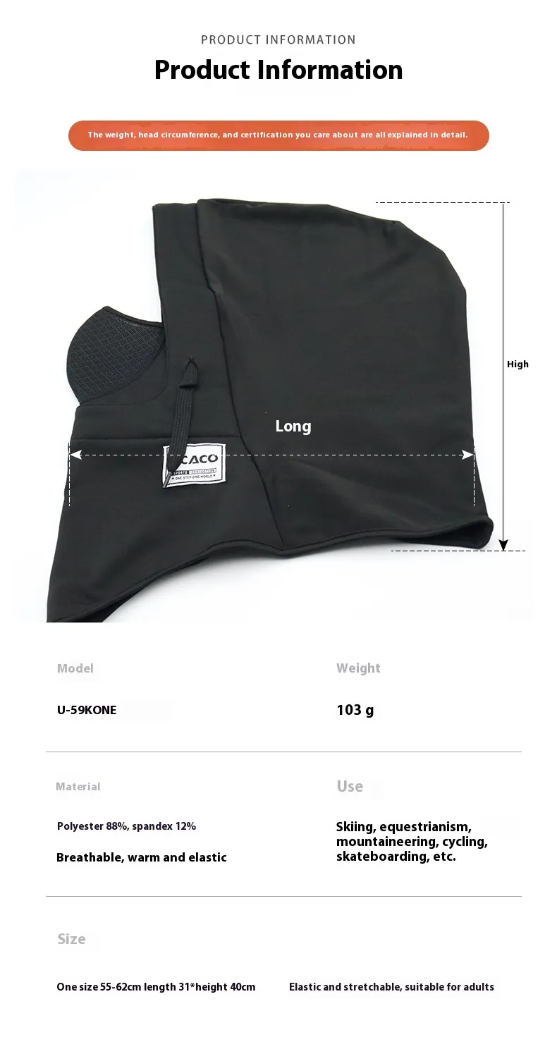 The flexible design of the Cycling and Skiing Warm Mask ensures a snug and adjustable fit for most face shapes and sizes. The elastic material stretches to fit comfortably around your face without feeling restrictive. The adjustable straps ensure the mask stays in place during your activities, providing maximum coverage and comfort.