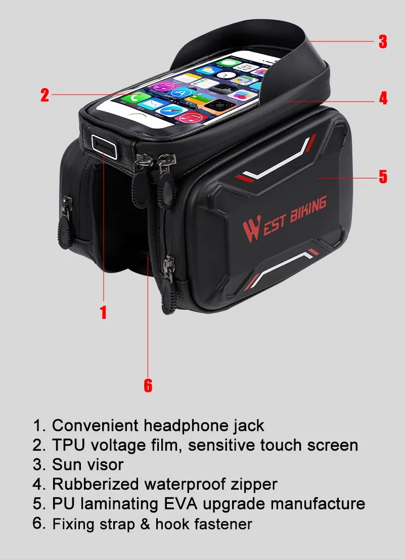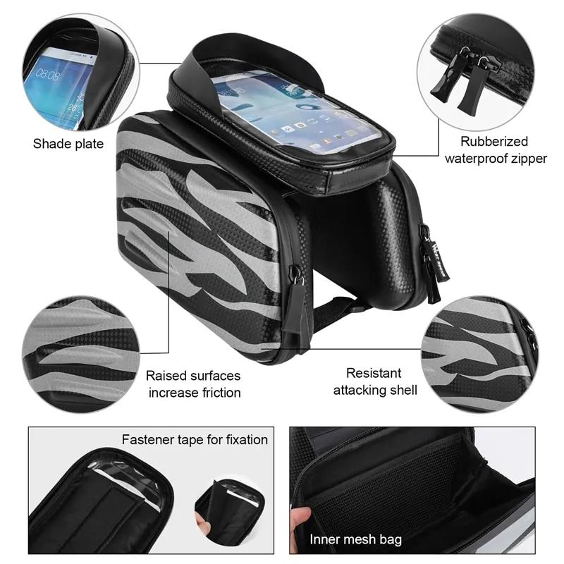 Name: waterproof bike front bag Material: EVA composite fabricSize: as pictureNet Weight: about 362g Suitable phone size: