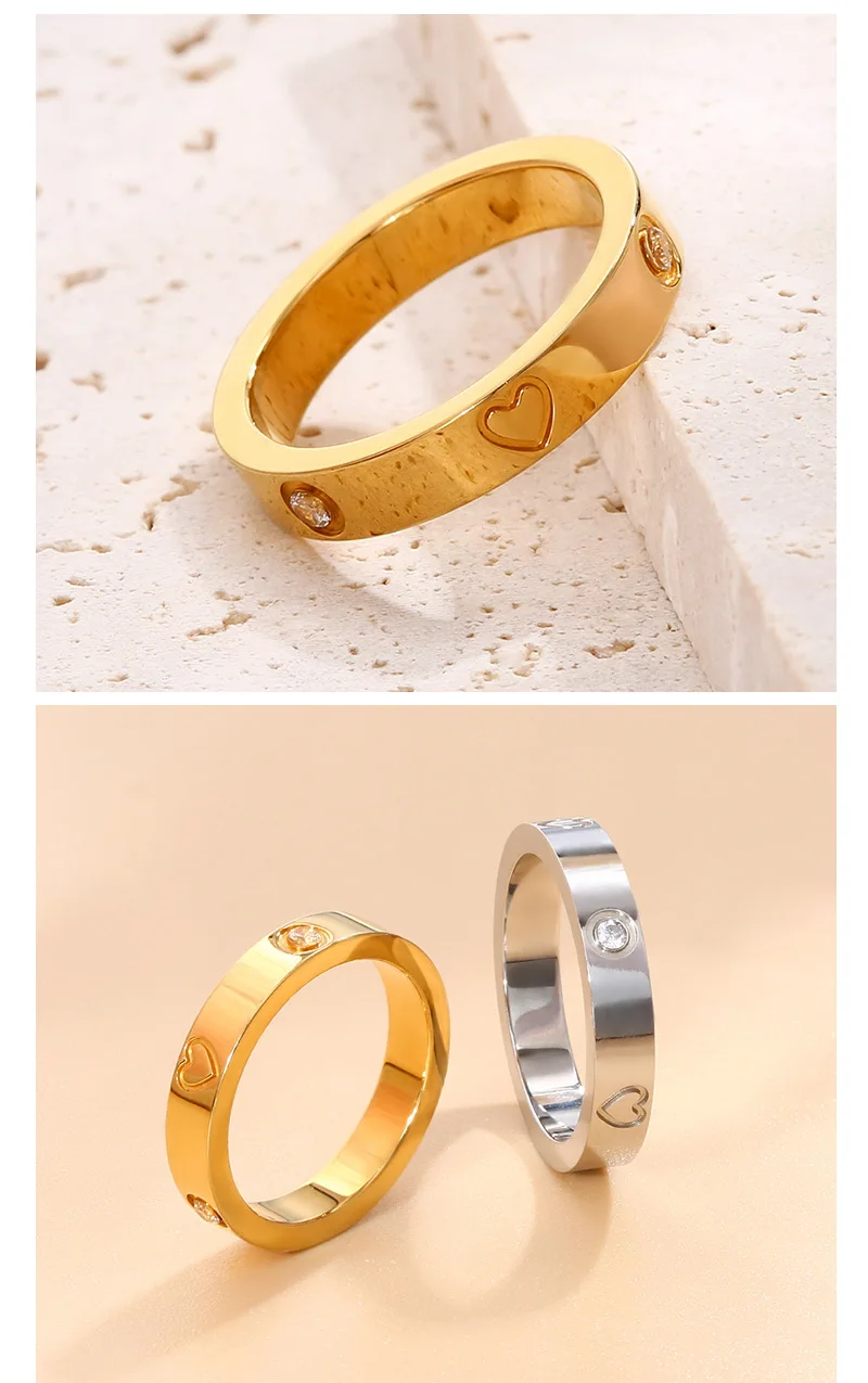 CZ Zircon Love Heart Engraved Stainless Steel Ring for Women