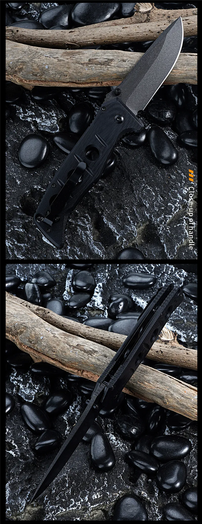 - Ergonomic G10 Handle: The G10 handle is lightweight, durable, and resistant to moisture, providing a firm and comfortable grip. Its textured surface ensures maximum control, even in wet or slippery conditions, making it ideal for outdoor activities.