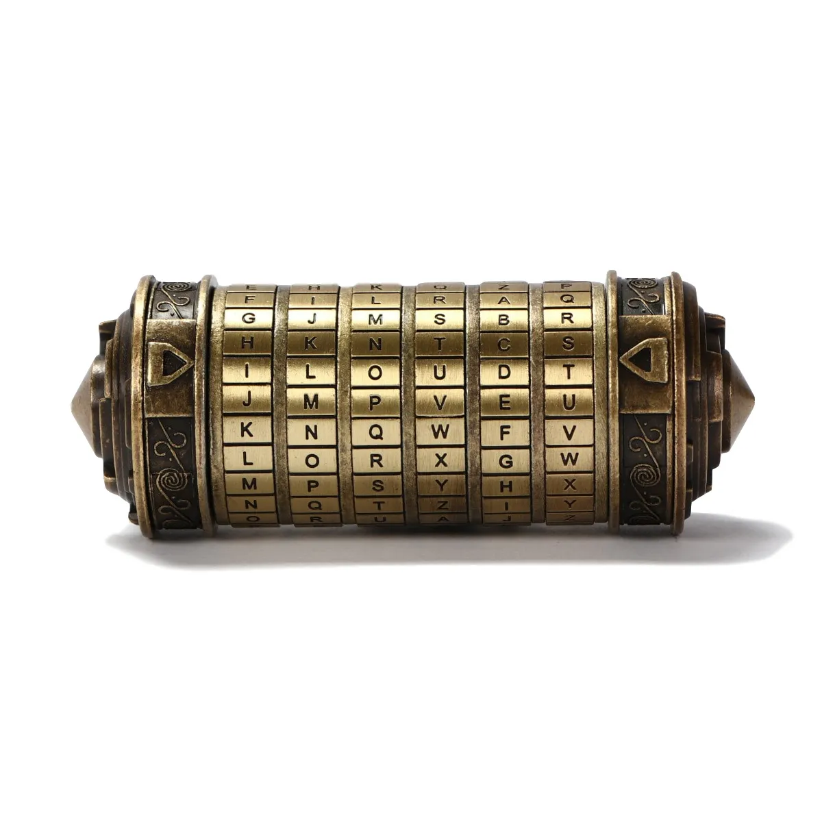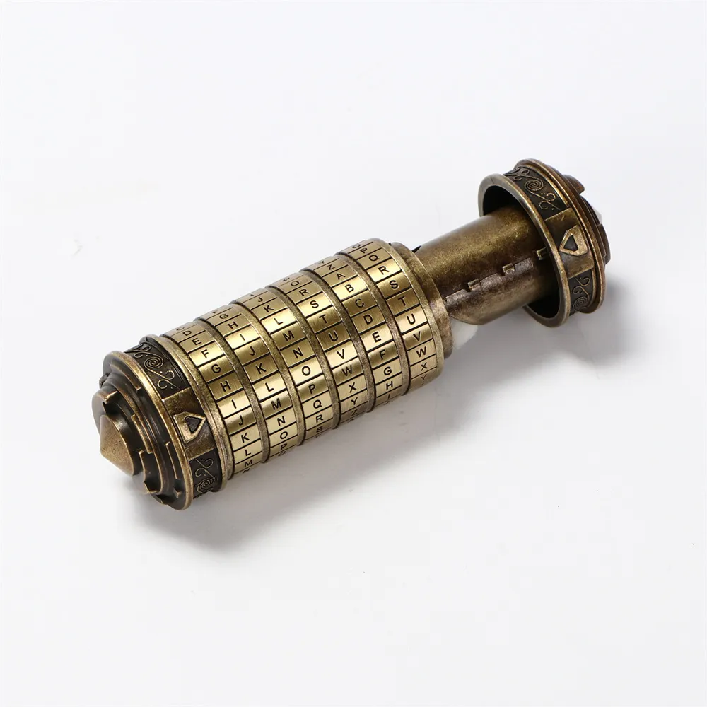 Crafted for both function and presentation, the mini cryptex features a solid cylindrical body with engraved-style lettering that enhances its antique, puzzle-like appearance. The rotating rings move smoothly, allowing users to experiment with different letter combinations while engaging logic, patience, and deduction skills.