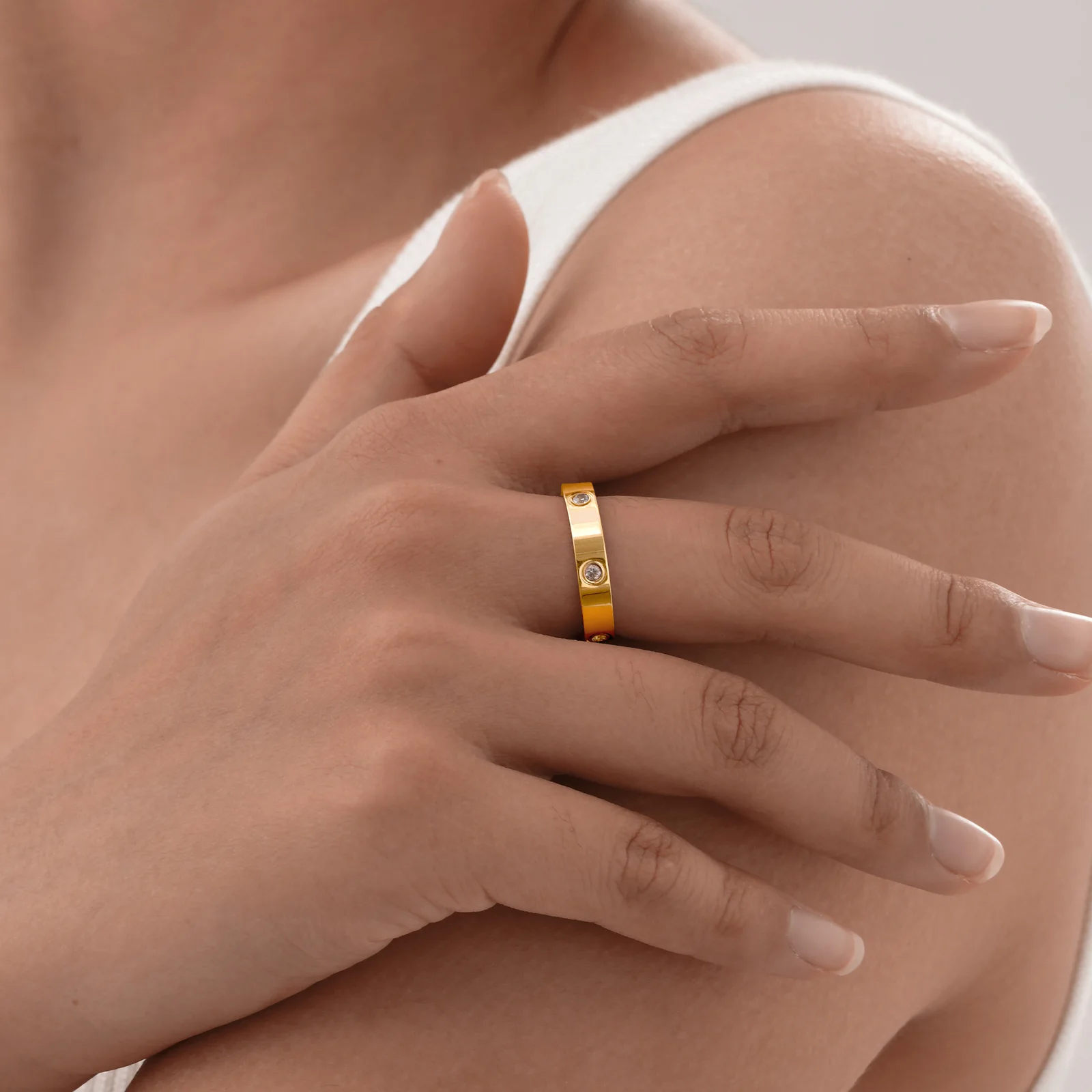Dainty Cubic Zirconia Love Promise Rings - Gold Plated Stainless Steel Wedding Band