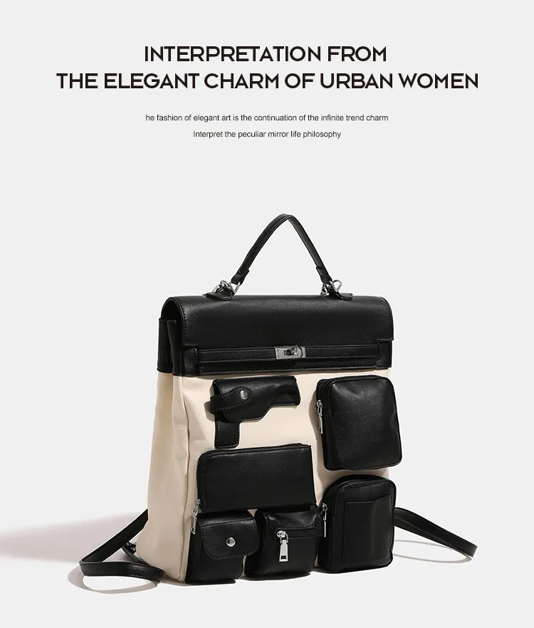 Match it with a denim jacket and ripped jeans for a casual, punk-inspired street style. Use its multiple pockets to carry everything you