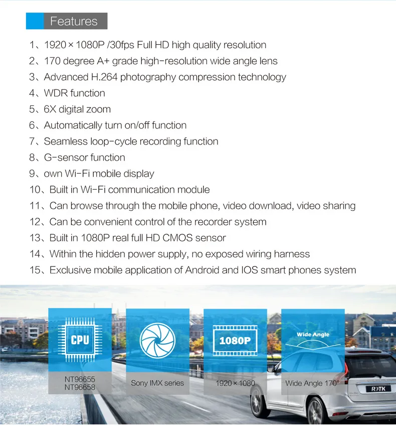 - The 170-degree wide-angle lens provides a comprehensive view of the road, capturing more than just what’s directly in front of your vehicle.