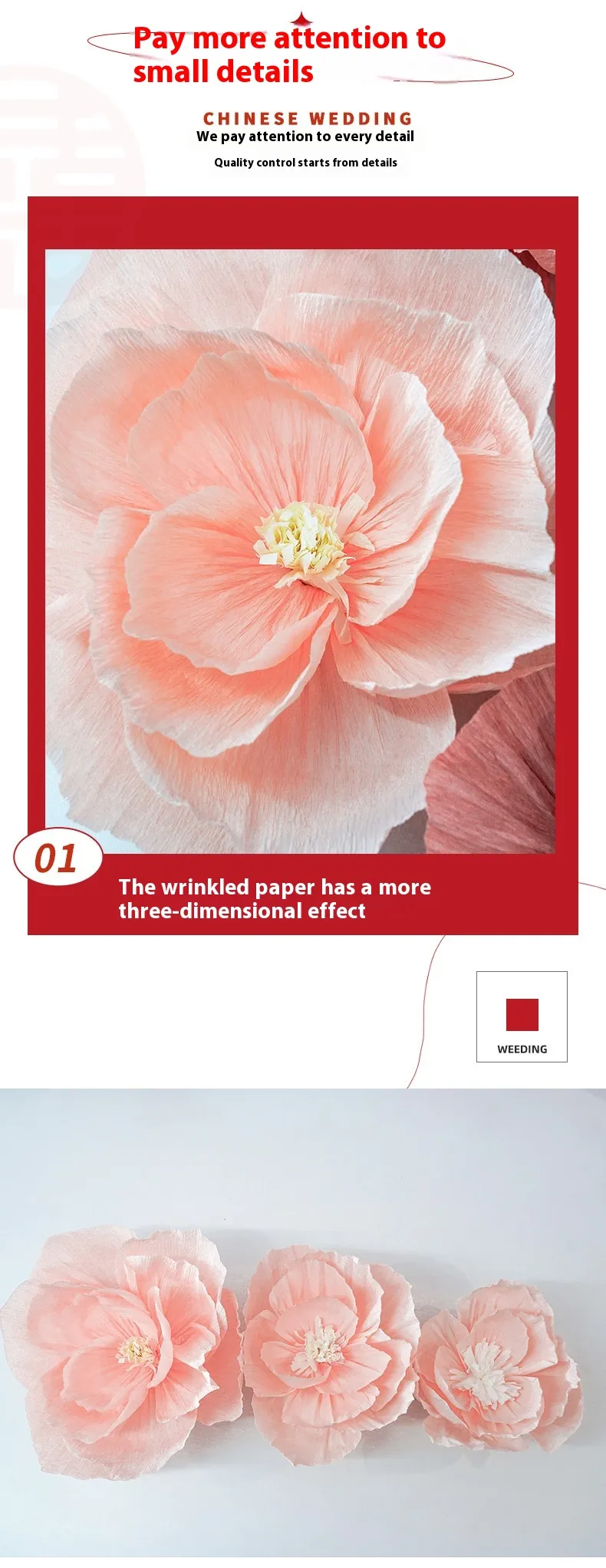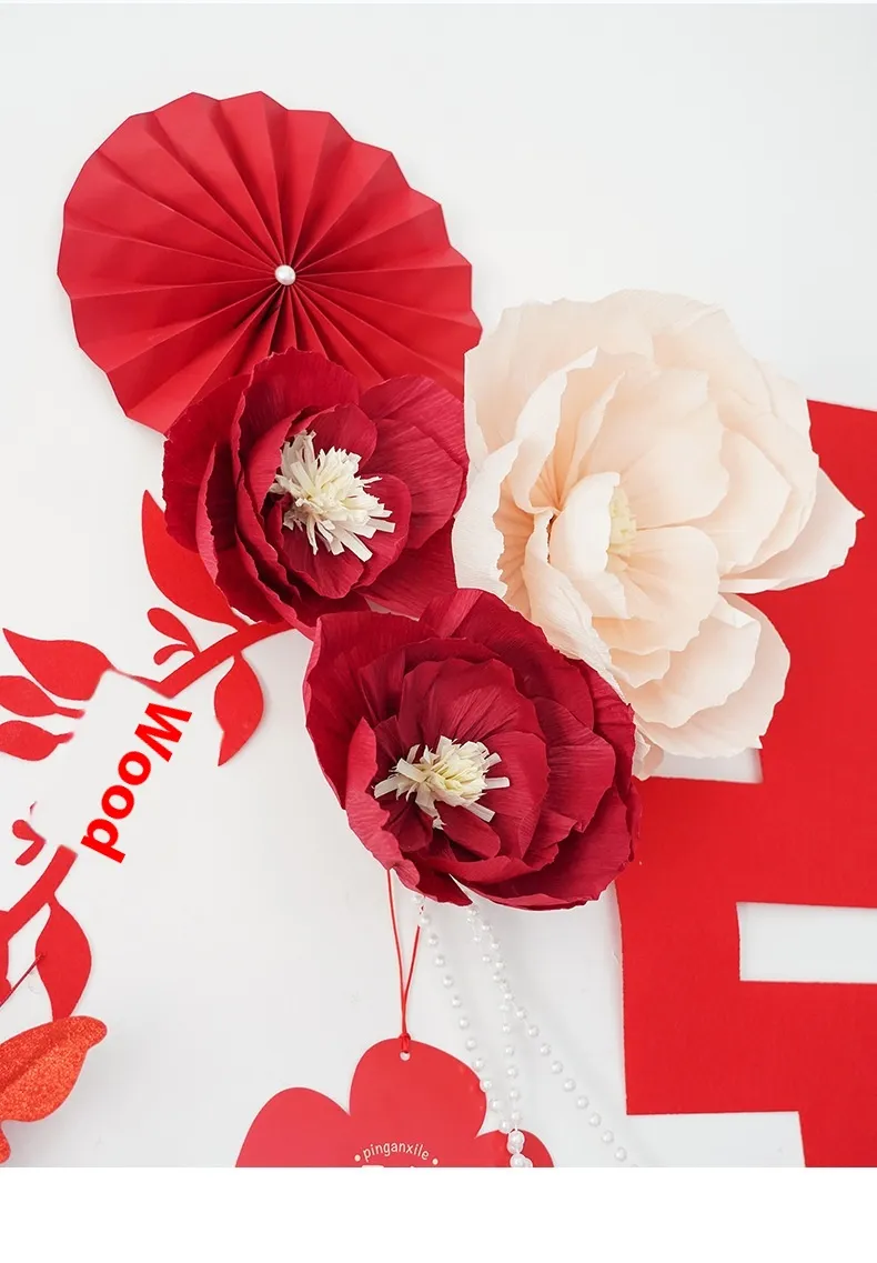 Color: pleated nectar peach color, pleated lotus root starch, pleated wine red