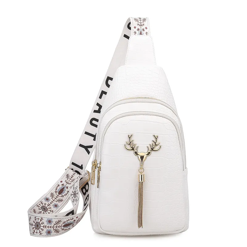 Deer Tassel Design Crossbody Bag Fashion Letter Embroidery Chest Bags For Women