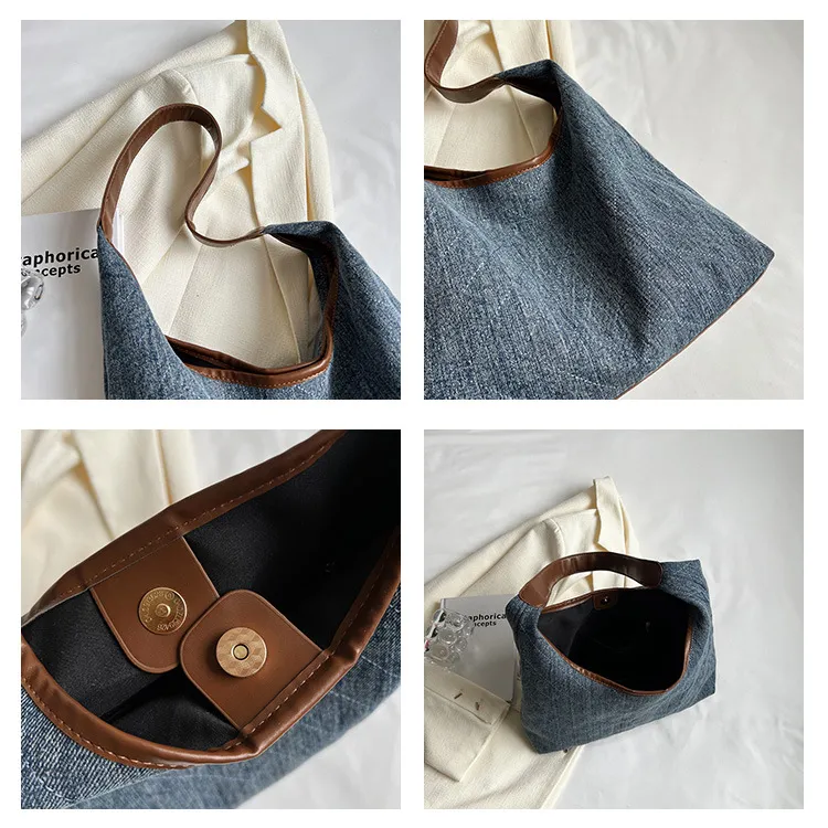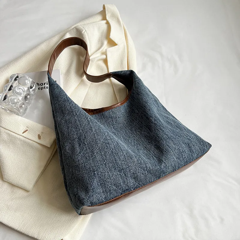 Denim Canvas Bucket Bag Fashion Large Capacity Shoulder Bags For Women Tote Handbag Female Shopping Bags