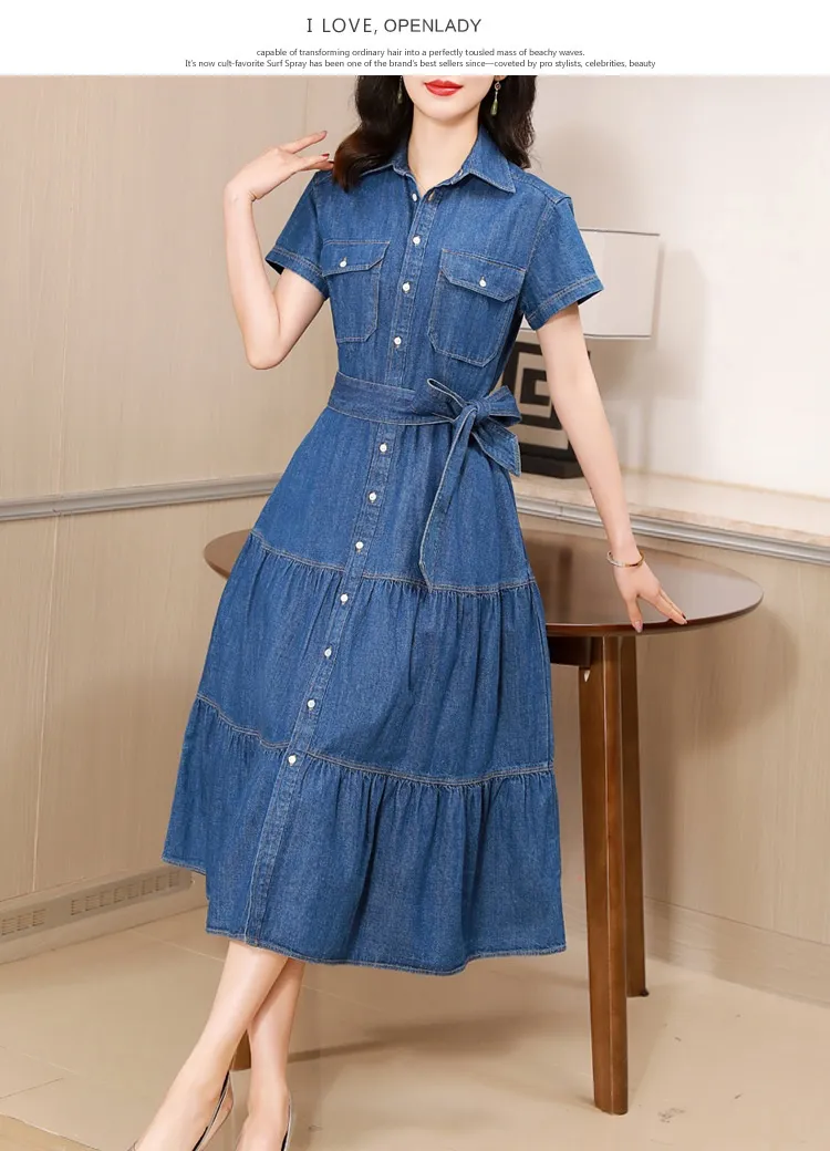 The denim shirt dress is perfect for any season. During the warmer months, it can be worn on its own with sandals for a relaxed, effortless look. As the weather cools down, simply layer it with tights, boots, or a jacket to continue wearing it through autumn and winter. Its versatility makes it a year-round essential in your closet.