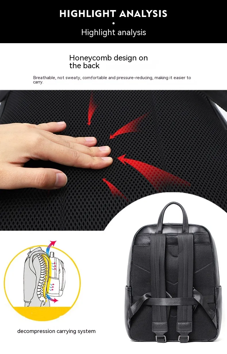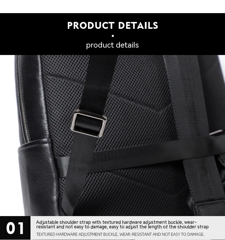 Crafted from high-grade first-layer cowhide, this backpack boasts a soft yet sturdy texture that ages beautifully over time. The natural