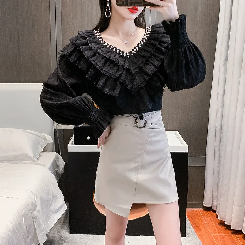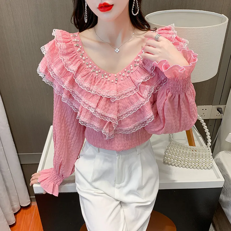 Design Sense Niche Bubble Long-Sleeved Lace Stitching Ruffled Shirt Tide: A Stylish and Chic Statement Piece