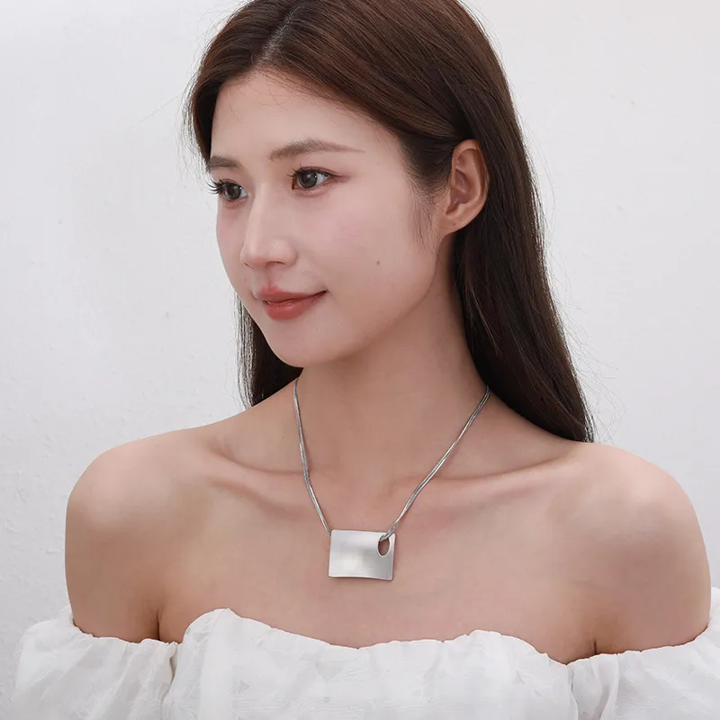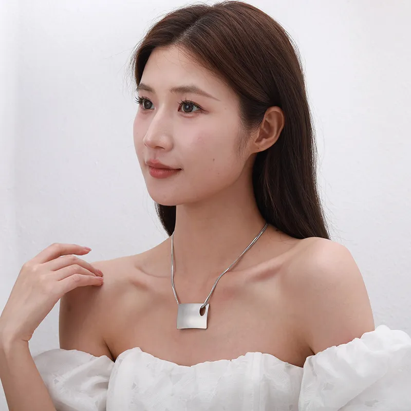 Design Sense Square Hollow Clavicle Chain Lady Necklace: Elegant, Modern, and Minimalist Jewelry