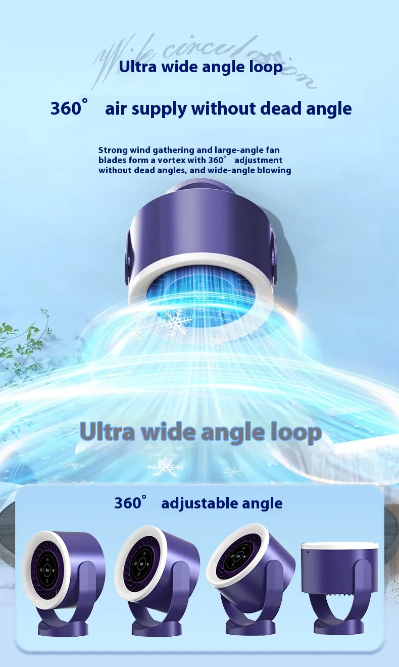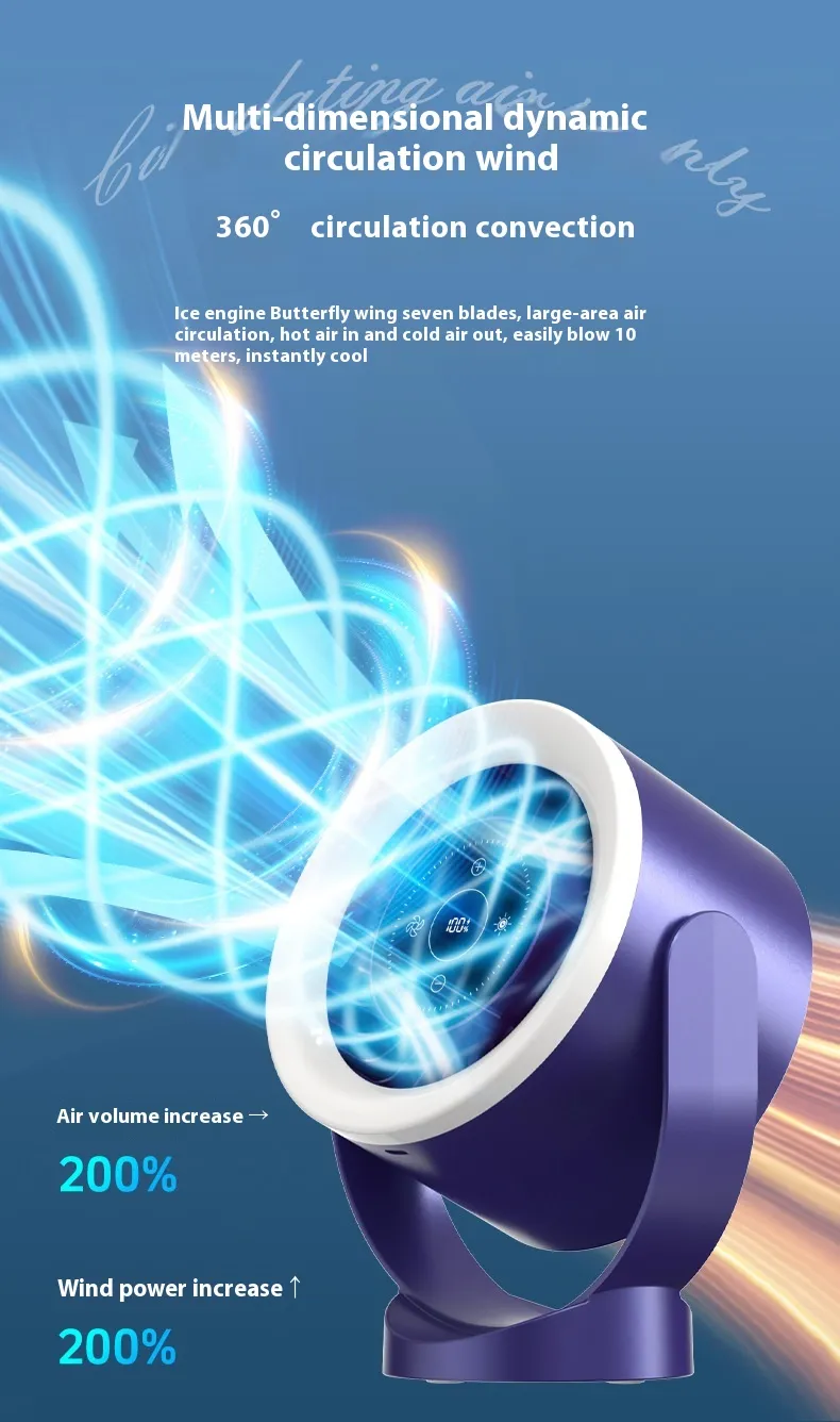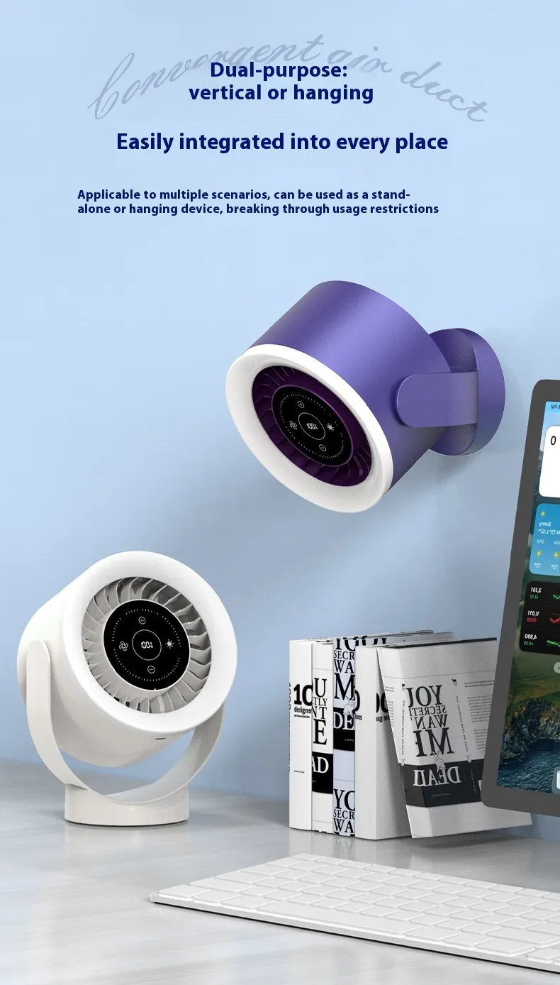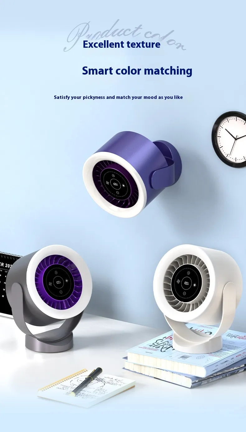 Desktop Adjustable Fan Light Rechargeable Wall Mount Table Fan Light Led Display Air Circulation Cooling USB Table Fan Light