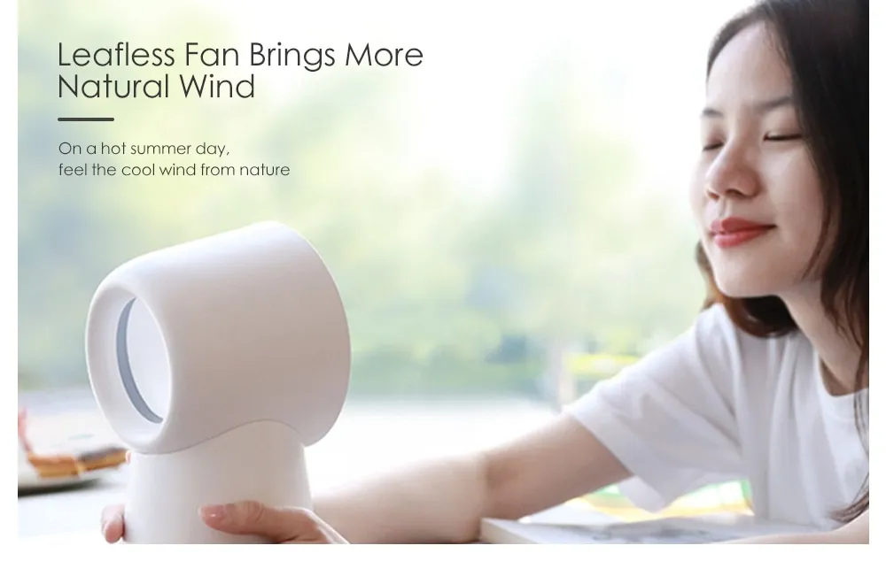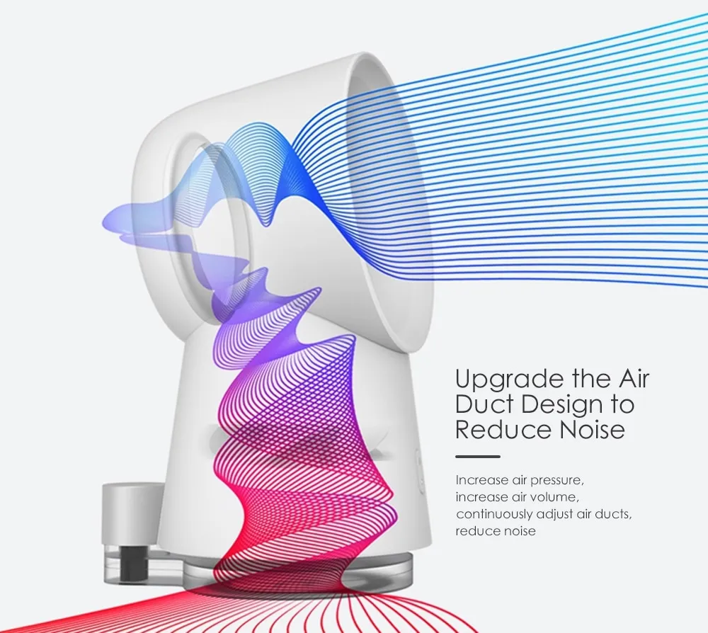 The bladeless office fan has a unique air duct design that increases air pressure and air volume.