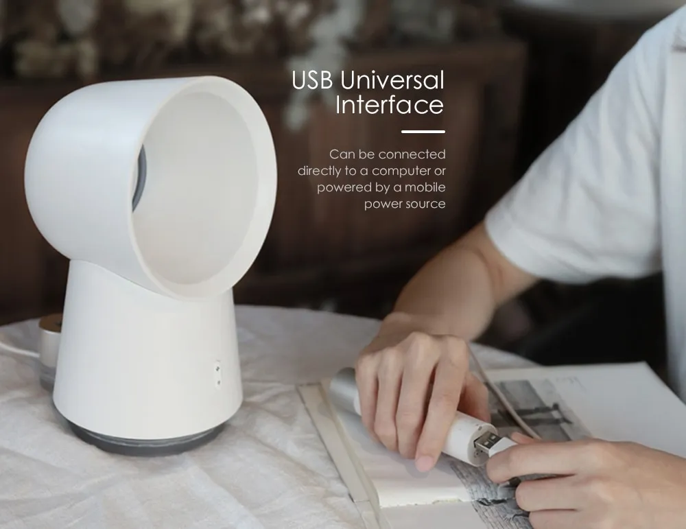 Stay cool, comfortable, and hydrated with the Desktop Bladeless Fan with USB Humidification, an all-in-one device that redefines personal cooling.