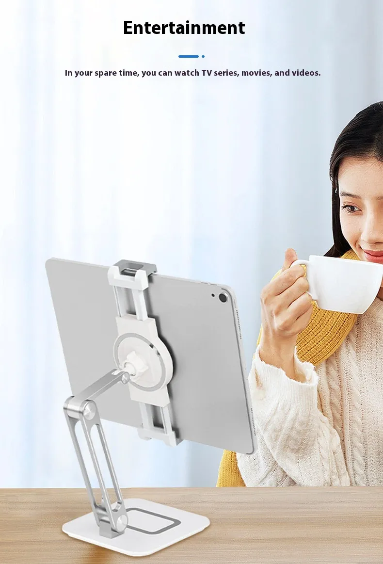 Made from premium aluminum alloy, the stand provides strong support, stability, and long-lasting durability. Its foldable design ensures easy storage and portability, while adjustable angles let you customize the viewing experience for comfort and convenience.