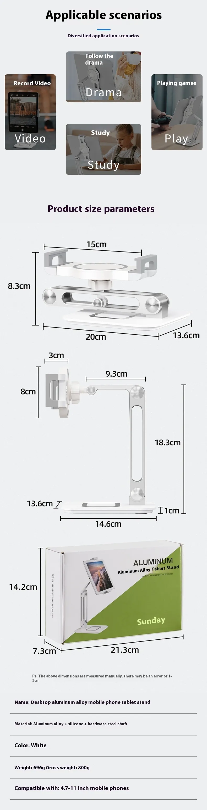 This desktop folding tablet and phone stand combines durability, adjustability, and portability, making it an essential accessory for New Zealand users who want a reliable and ergonomic way to hold their devices hands-free.