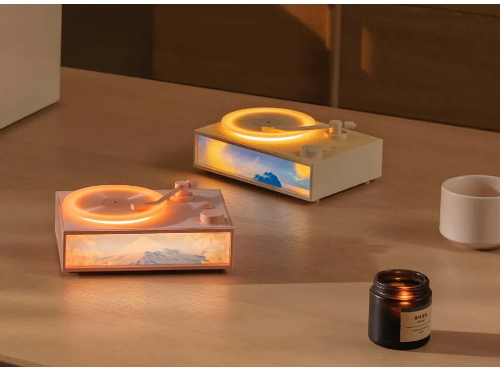 to suit your mood and preferences, transforming your workspace into a calming oasis. The Desktop Fragrance Vinyl Bluetooth Speaker is not