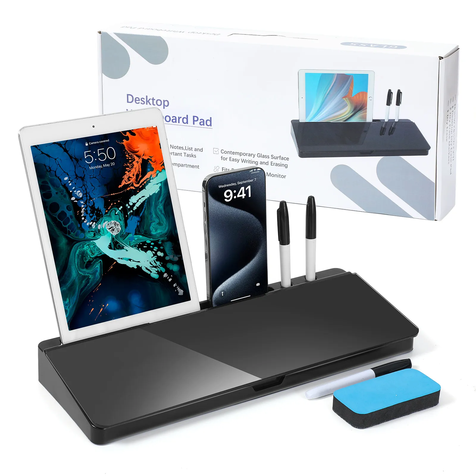 Upgrade your workspace with the Desktop Whiteboard with Storage, featuring a sleek tempered glass writing surface that combines functionality with modern design. Perfect for home offices, classrooms, or workspaces, this durable writing board offers a smooth, easy-to-clean surface that’s ideal for jotting down notes, to-do lists, reminders, or creative ideas. The tempered glass resists stains, scratches, and ghosting, ensuring your writing stays clear and vibrant, making it a perfect tool for daily use.