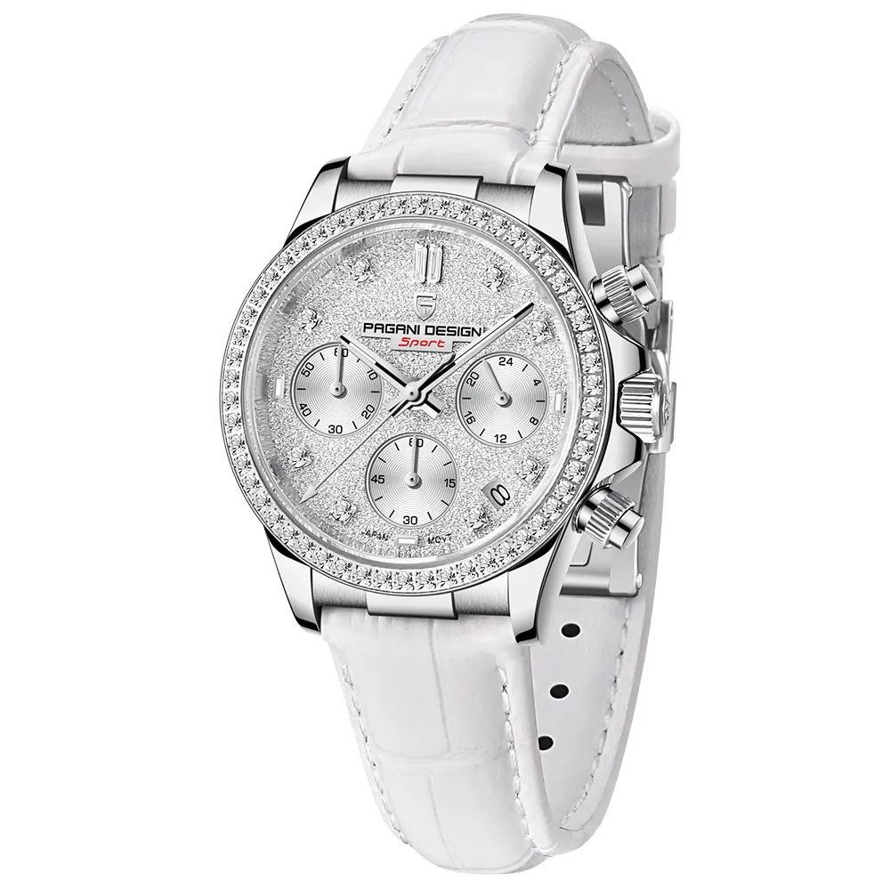 and functionality. This exquisite watch features a stunning diamond-encrusted surface that catches the light beautifully, making it a
