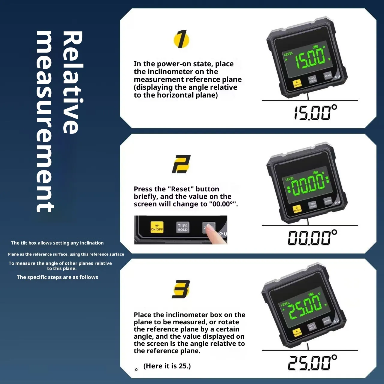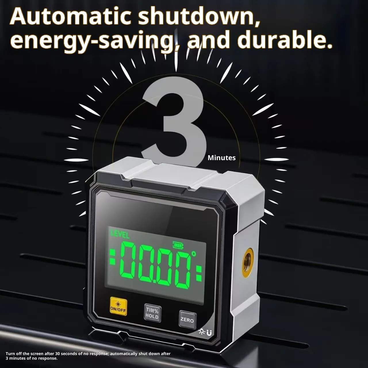 This digital angle finder is suitable for a broad range of applications: precision woodworking, metal fabrication alignment, framing and roofing angle verification, cabinetry installation, tile and stone layout, machine setup, and landscaping grade checks. Its compact form factor and integrated features bring professional-grade measurement capabilities to both tradespeople and home users alike.