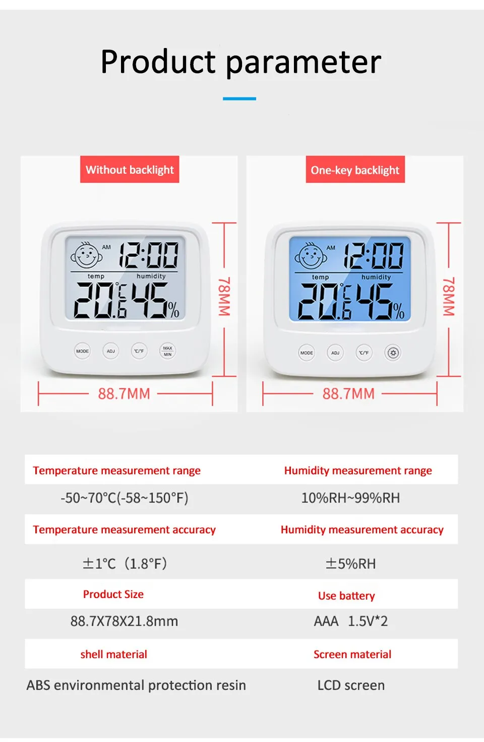 7. Easy to use Thermo-hygrometer adopts simple 3-button design, making it more elegant and slim.