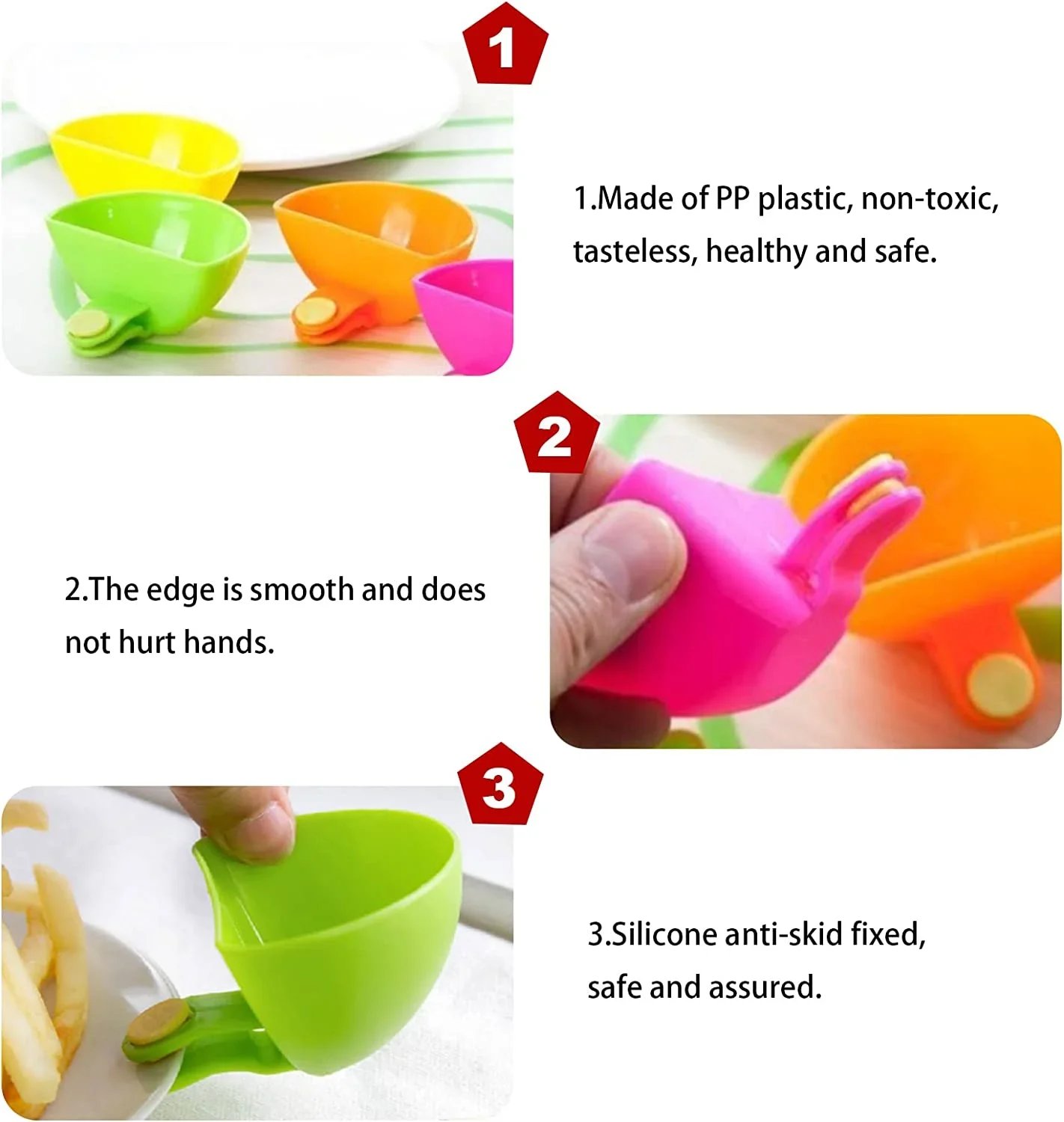 🍟Convenient and durable to use, easy to clean: Easy carry with plate, easy store in kitchen drawer,cute with 4 color