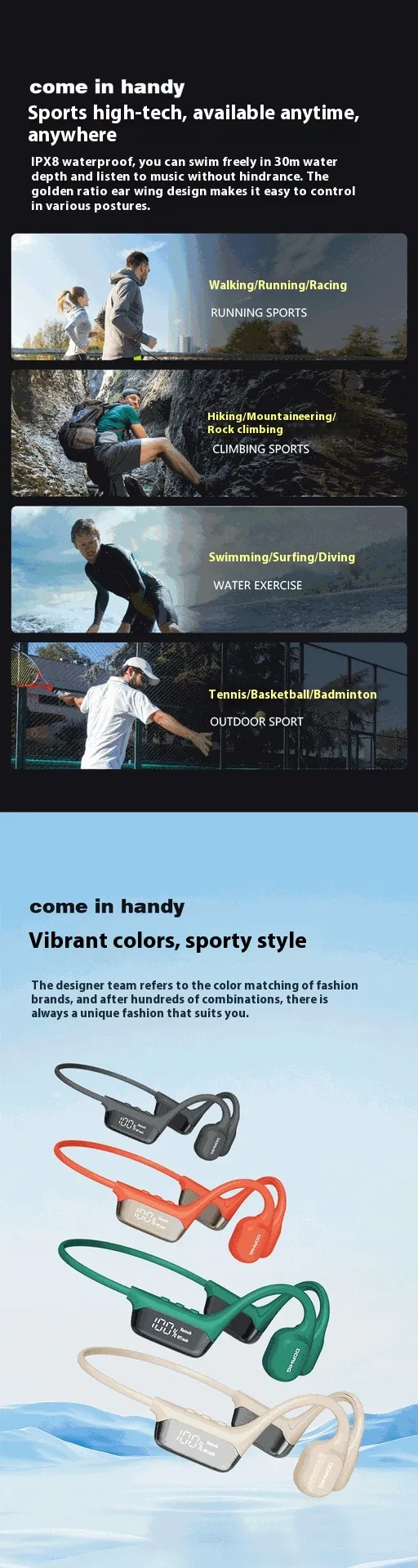 Display Screen Bluetooth-compatible Headset For Bone Conduction 53 Waterproof Sports Headset SKU: CJYP209135201AZ Lists: 25