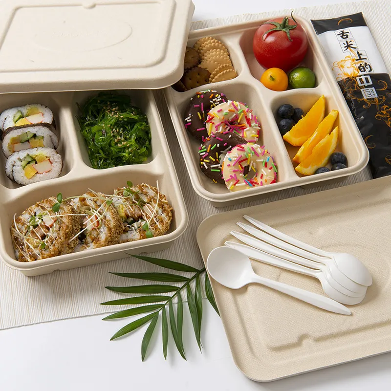 Style 14: Cane Pulp Five Grid Meal Box with Lid