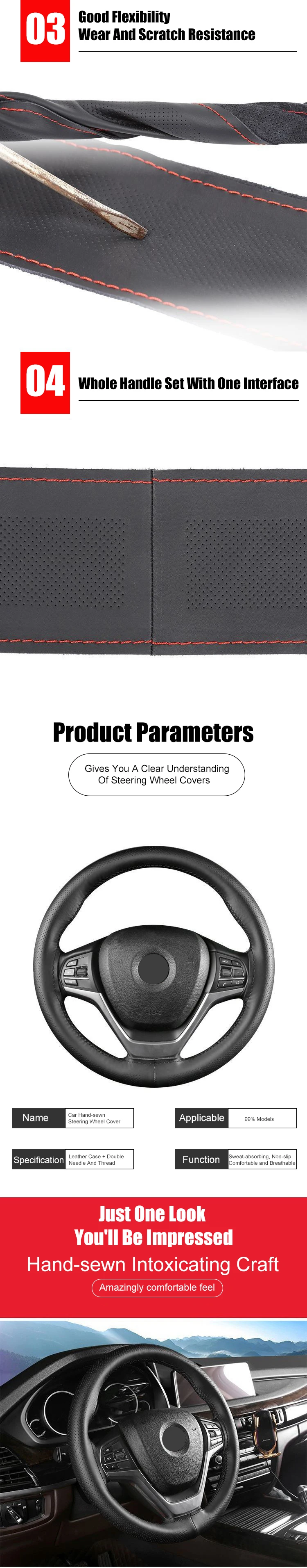 This DIY steering wheel cover is made from high-quality artificial leather, designed for long-lasting use and a comfortable grip. Its