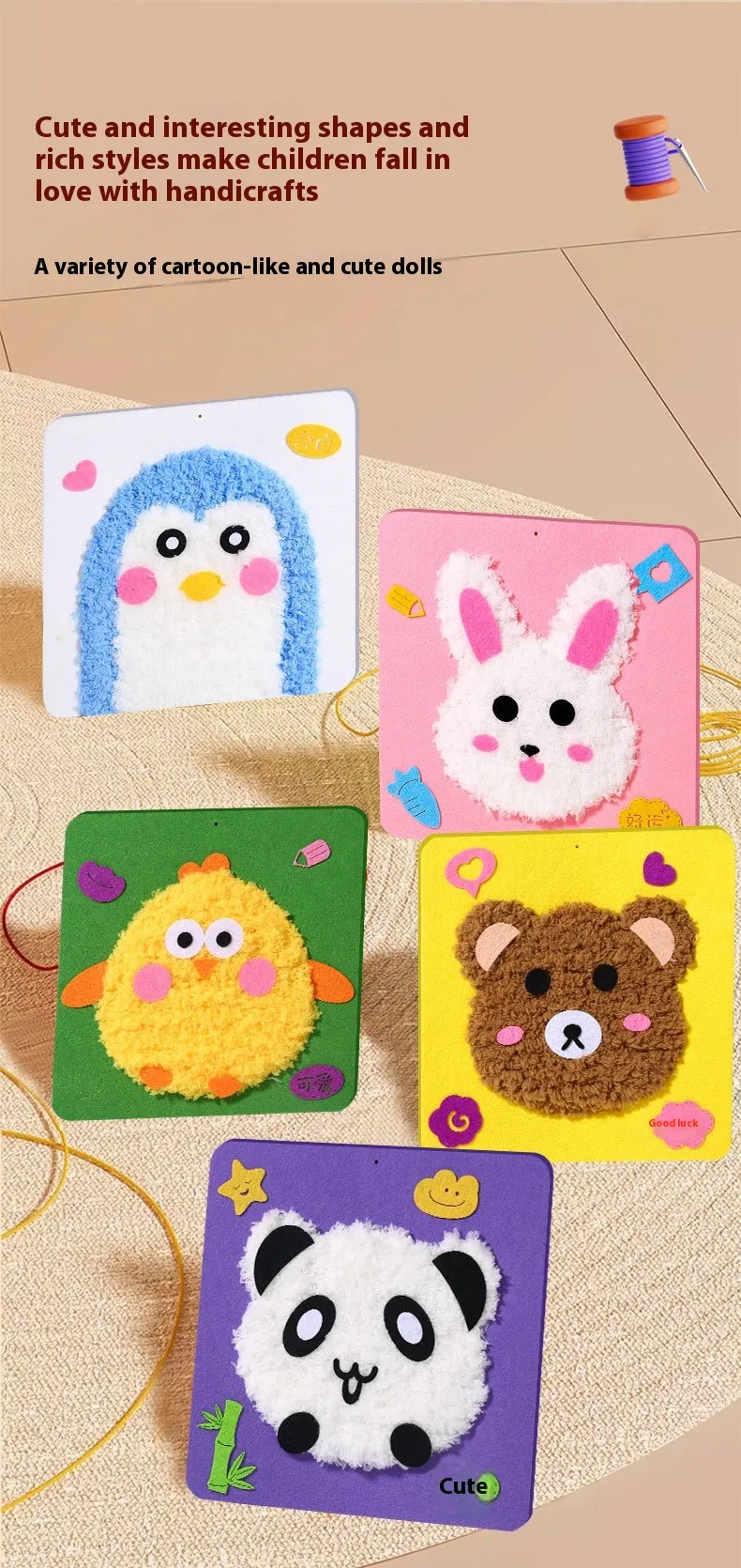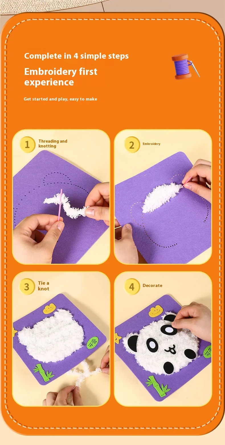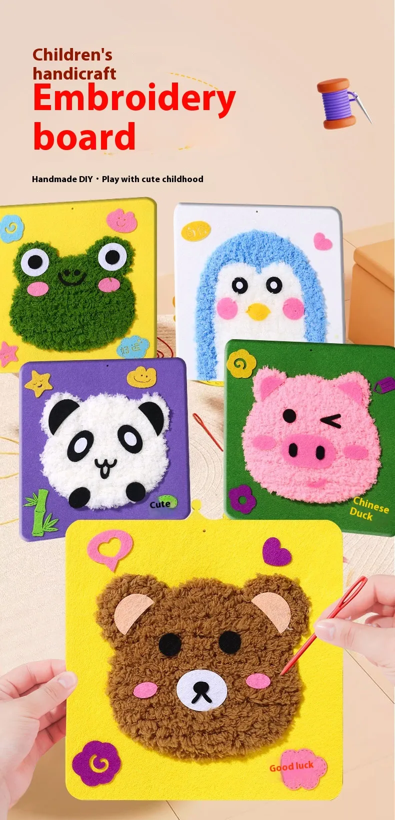 DIY wool embroidery music-frog, DIY wool embroidery music-bear, DIY wool embroidery music-chicken, DIY wool embroidery music-Panda chicken