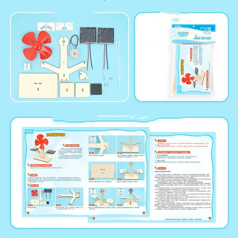 The kit contains solar panels, a small electric motor, fan blades, wiring, and other essential components to assemble a working solar fan. The solar panel captures sunlight and converts it into electrical energy, which powers the fan motor to produce a cool breeze. This eco-friendly technology kit not only demonstrates the principles of solar power but also helps young minds understand the importance of renewable energy in a fun and interactive way.