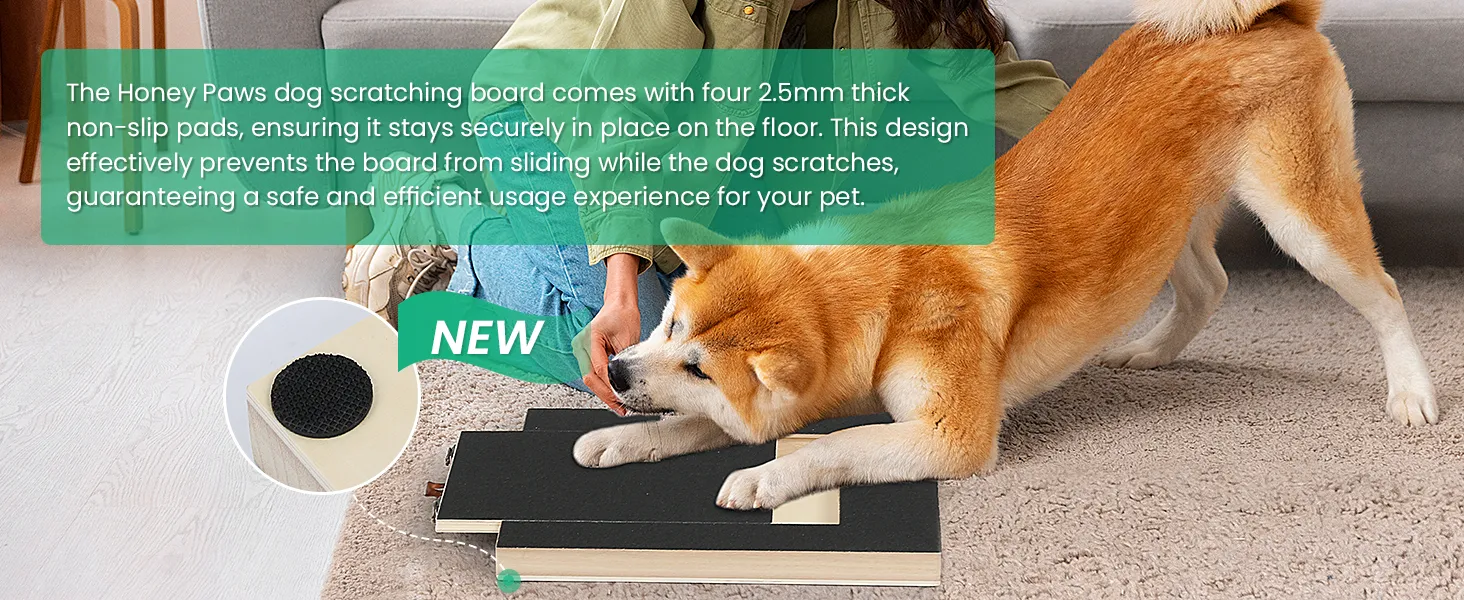 【Stability and Safety】Our dog scratch board comes with four circular non-slip pads, ensuring stable placement on the floor, making the nail trimming process safe and steady. This allows dogs to trim their nails while having fun, achieving easily nail care. Your furry friend will love it!