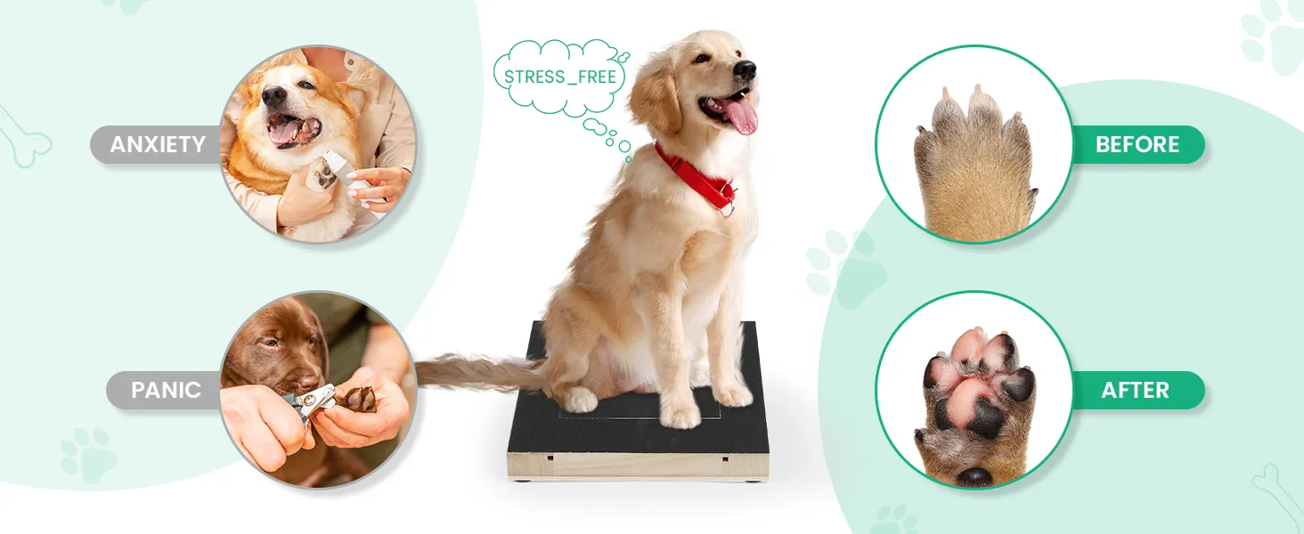 This innovative dog nail file board includes a built-in treat box to keep your pet engaged and motivated during nail grooming sessions. The treat box is designed to reward your pet while they use the board, creating a positive association and making the trimming process enjoyable. The surface of the board features a textured, nail-safe abrasive material that effectively files down your dog’s nails while being gentle on their paws. The board’s non-slip base ensures stability during use, providing a secure and safe environment for your dog to scratch and trim their nails.