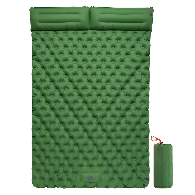 With its built-in pillow pump, this inflatable mattress eliminates the need for separate pumps or breath inflation, giving you more time to relax and enjoy your surroundings. Whether you're camping with a partner or enjoying some solo outdoor time, this mat ensures a restful and comfortable sleep.