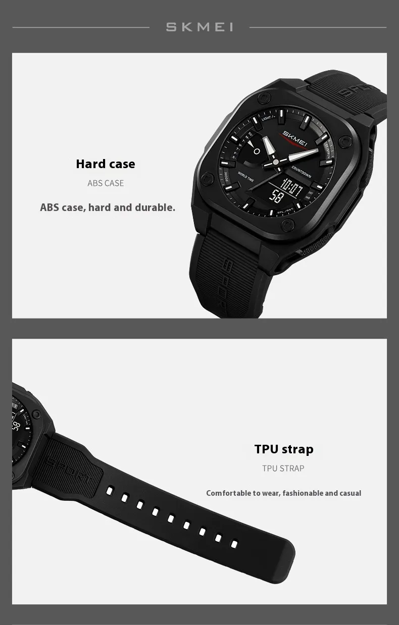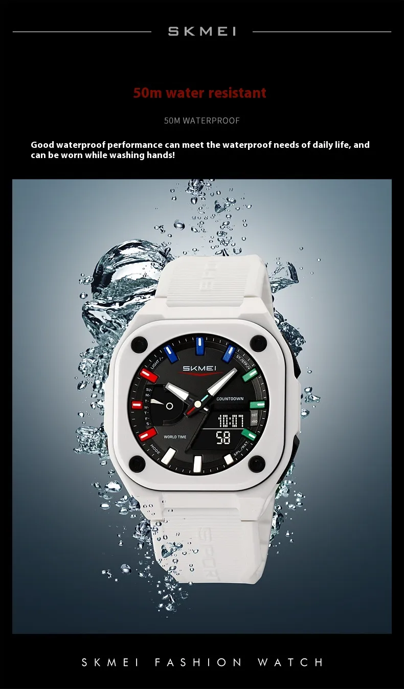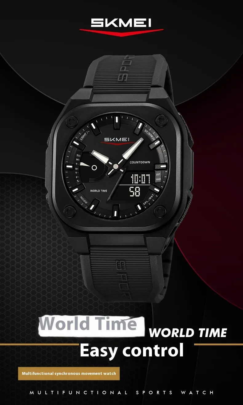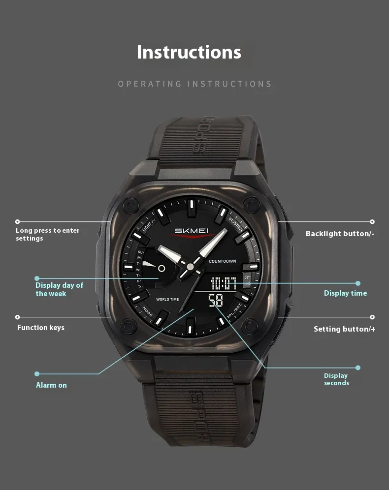 Built with high-quality materials, the watch features a luminous display that ensures easy time reading in low-light or nighttime conditions. Its waterproof construction allows it to withstand rain, splashes, and outdoor activities, offering dependable performance regardless of the environment. The multifunctional design includes dual time displays, alarms, stopwatch, and calendar functions, providing all the features you need in one convenient device.