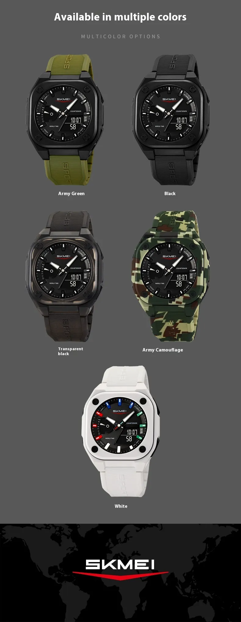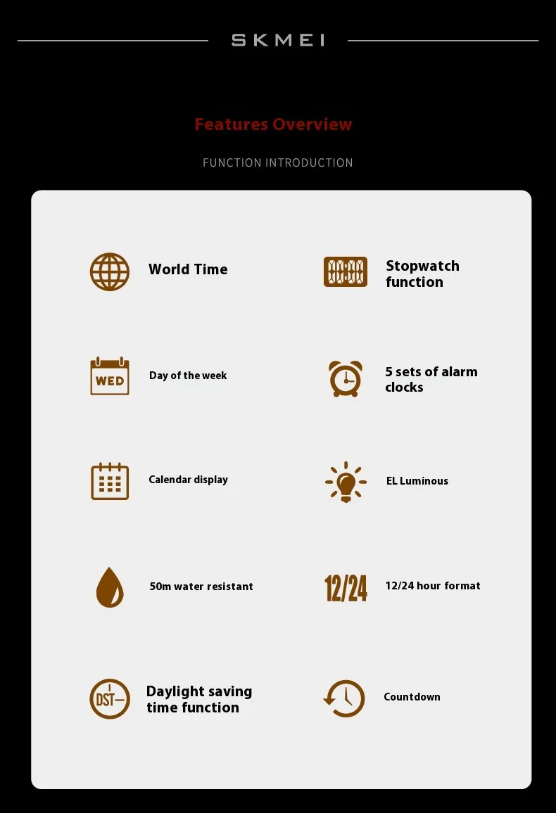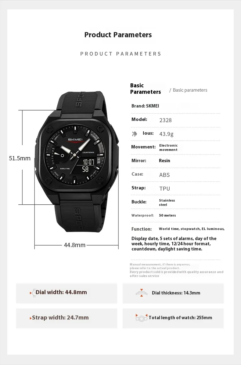 Built with high-quality materials, the watch features a luminous display that ensures easy time reading in low-light or nighttime conditions. Its waterproof construction allows it to withstand rain, splashes, and outdoor activities, offering dependable performance regardless of the environment. The multifunctional design includes dual time displays, alarms, stopwatch, and calendar functions, providing all the features you need in one convenient device.