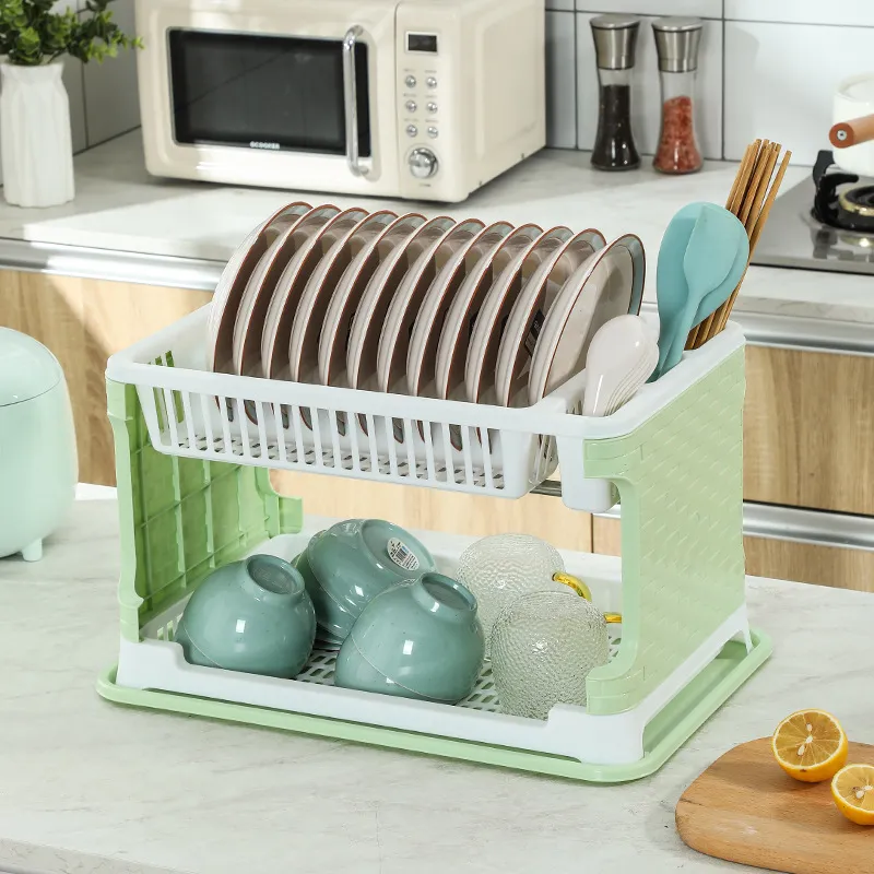 The Double Layer Drainage Kitchen Storage Rack is perfect for optimising vertical space.