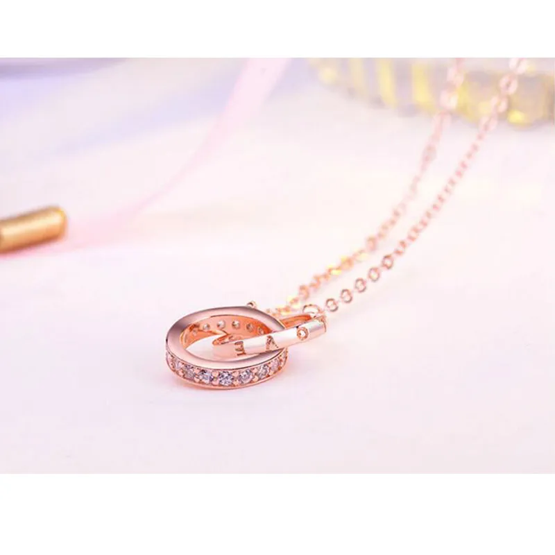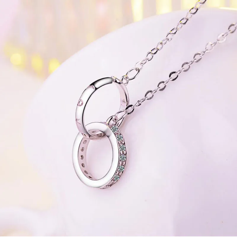 Double Ring Necklace Female Zircon Jewelry