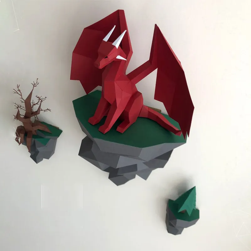 Bring Mythical Elegance to Your Home with the Dragon Paper Model Sitting On The Island Wall Hanging