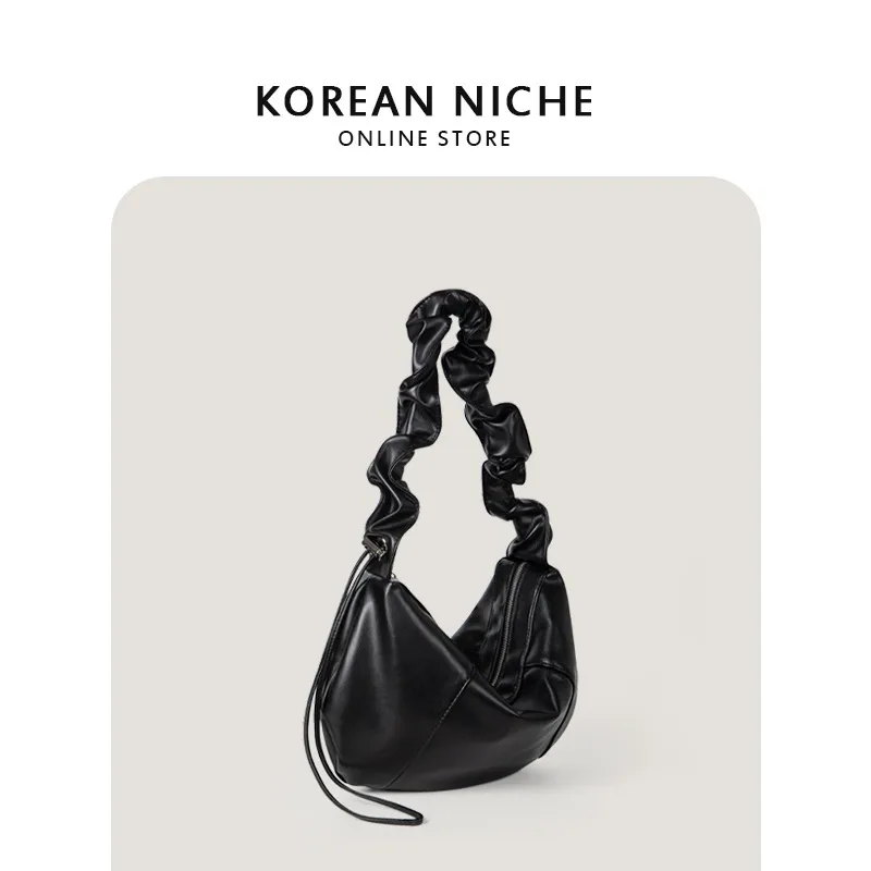 Drawstring Ruffle Soft Leather High-grade Large Capacity Underarm Bag