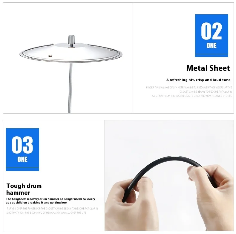 The kit is designed to be durable and stable, offering excellent rebound and response during drumming. The included hardware, such as pedals, stands, and cymbal arms, are built to provide strong support and a responsive feel, whether you're playing fast beats or slower rhythms. With adjustable components, you can customize the setup to suit your personal preferences for optimal comfort and playability.