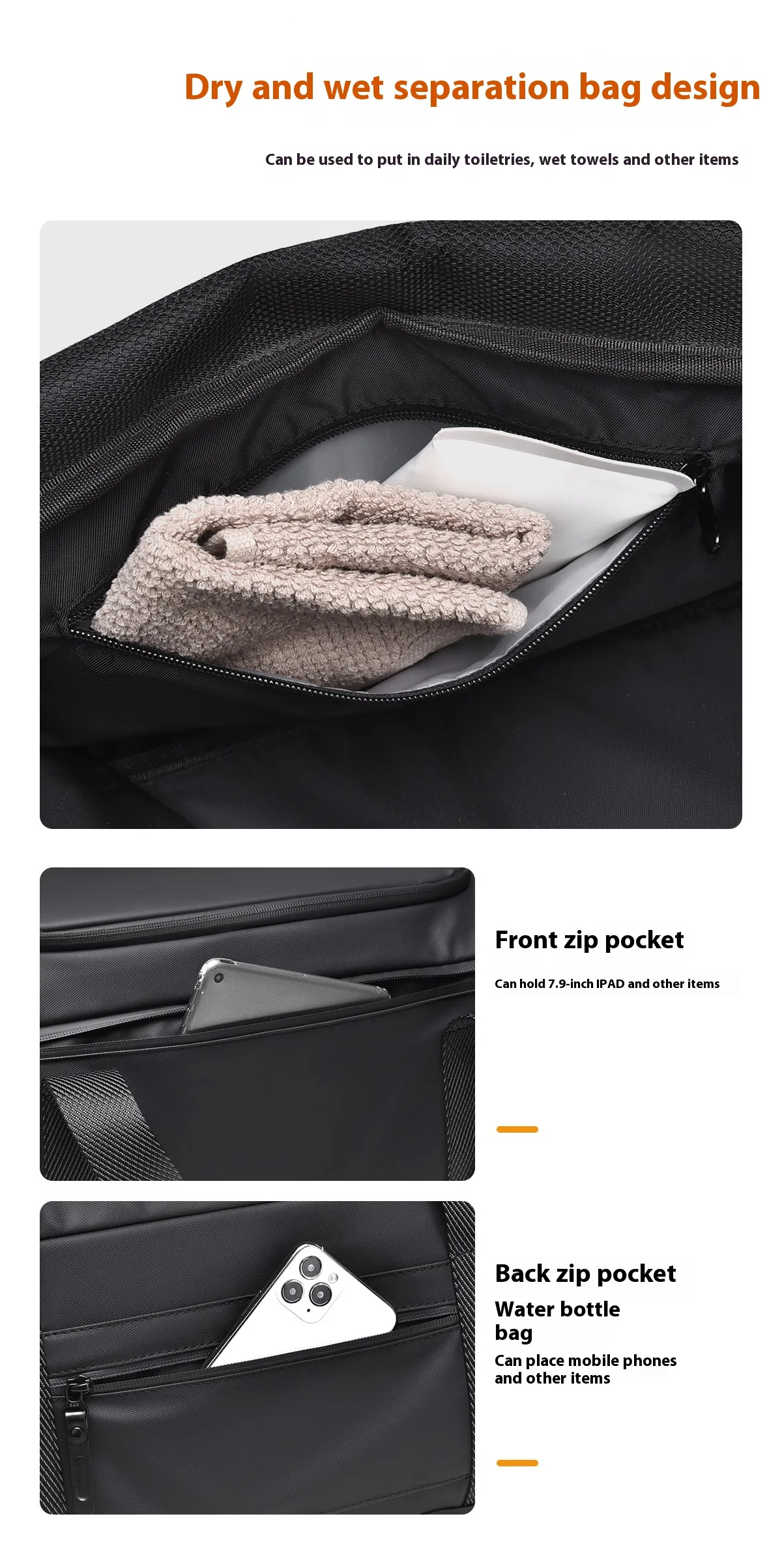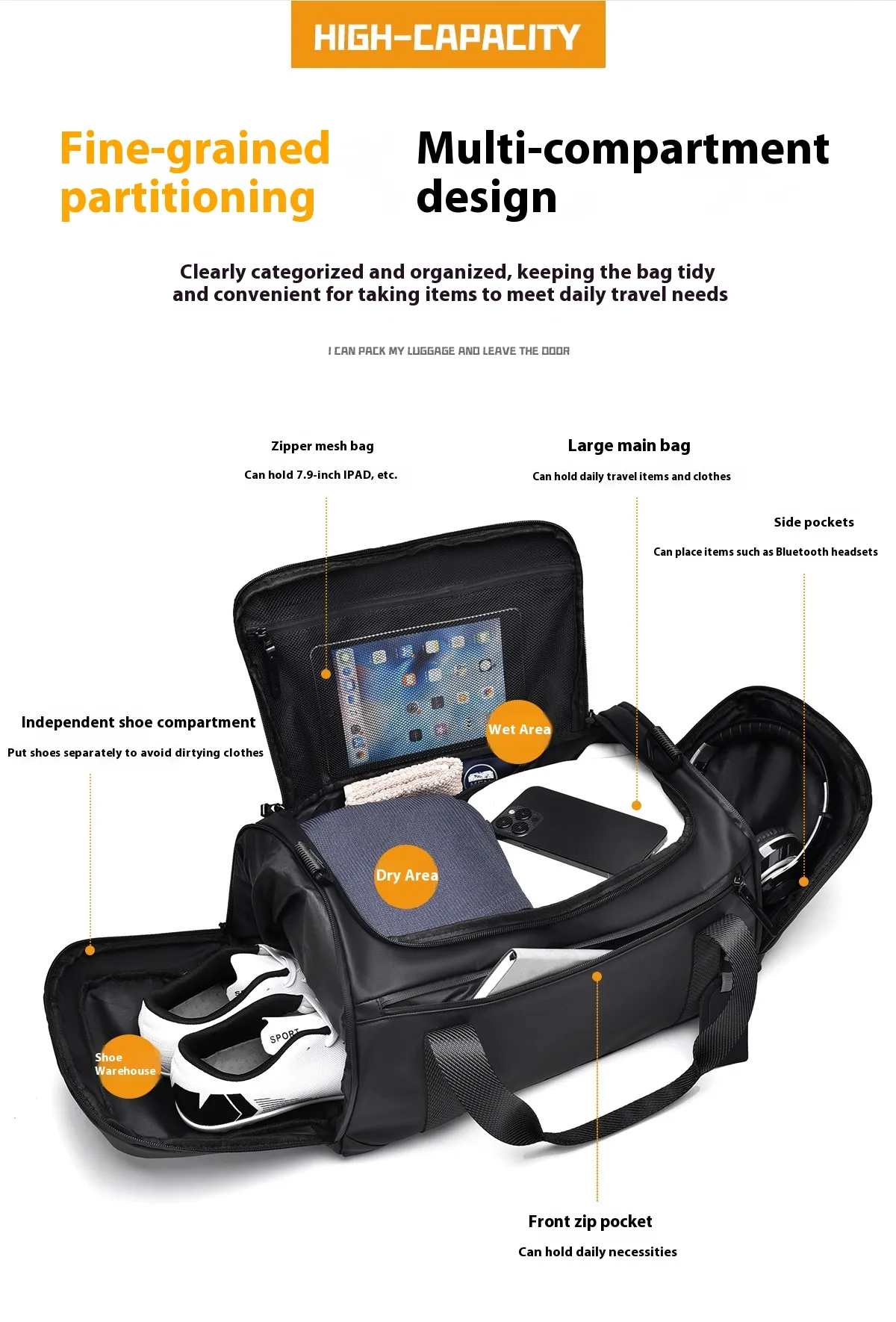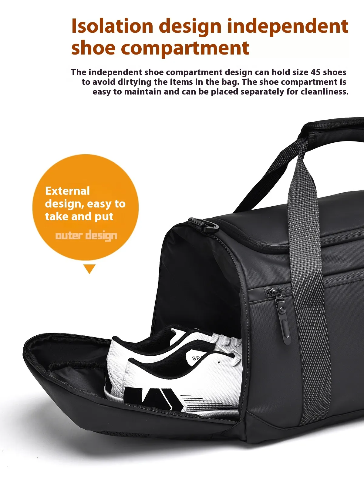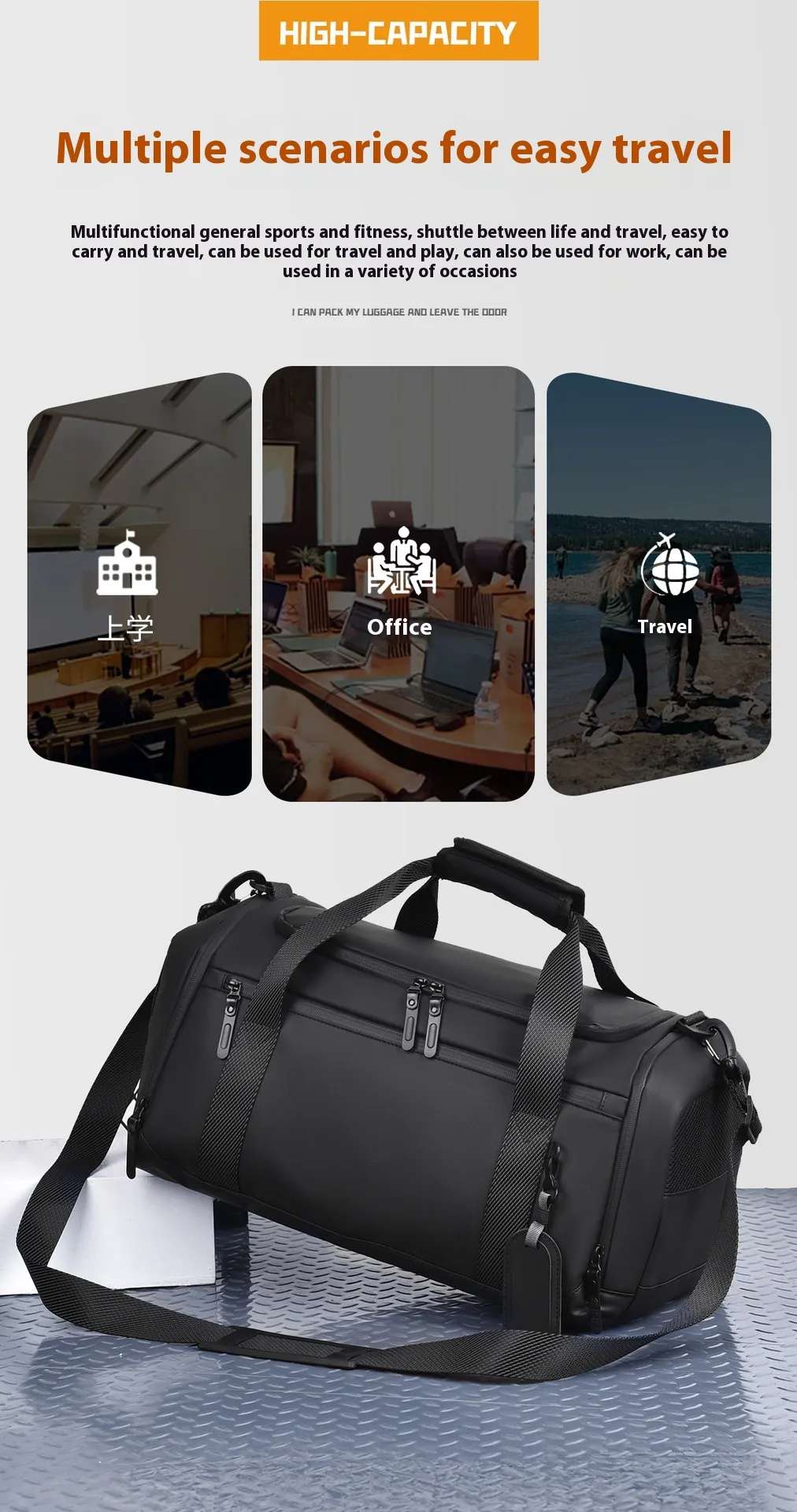With dry wet separation technology, this bag offers a dedicated compartment to store wet or dirty items, like shoes or towels, separate from your clean clothes and other essentials. The large capacity design ensures you can pack everything you need, and the handbag style makes it easy to carry as either a shoulder bag or a travel companion.