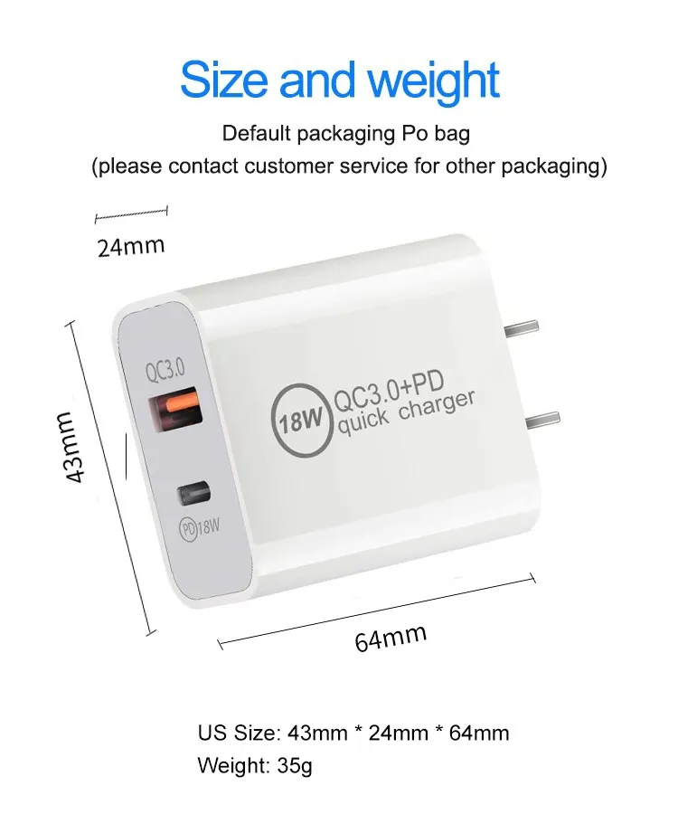 The Dual Port Charger features two high-speed charging ports that allow you to charge multiple devices at once without losing performance. It supports Power Delivery (PD) and Quick Charge (QC) technology for fast and efficient energy transfer, reducing the time it takes to reach a full charge.