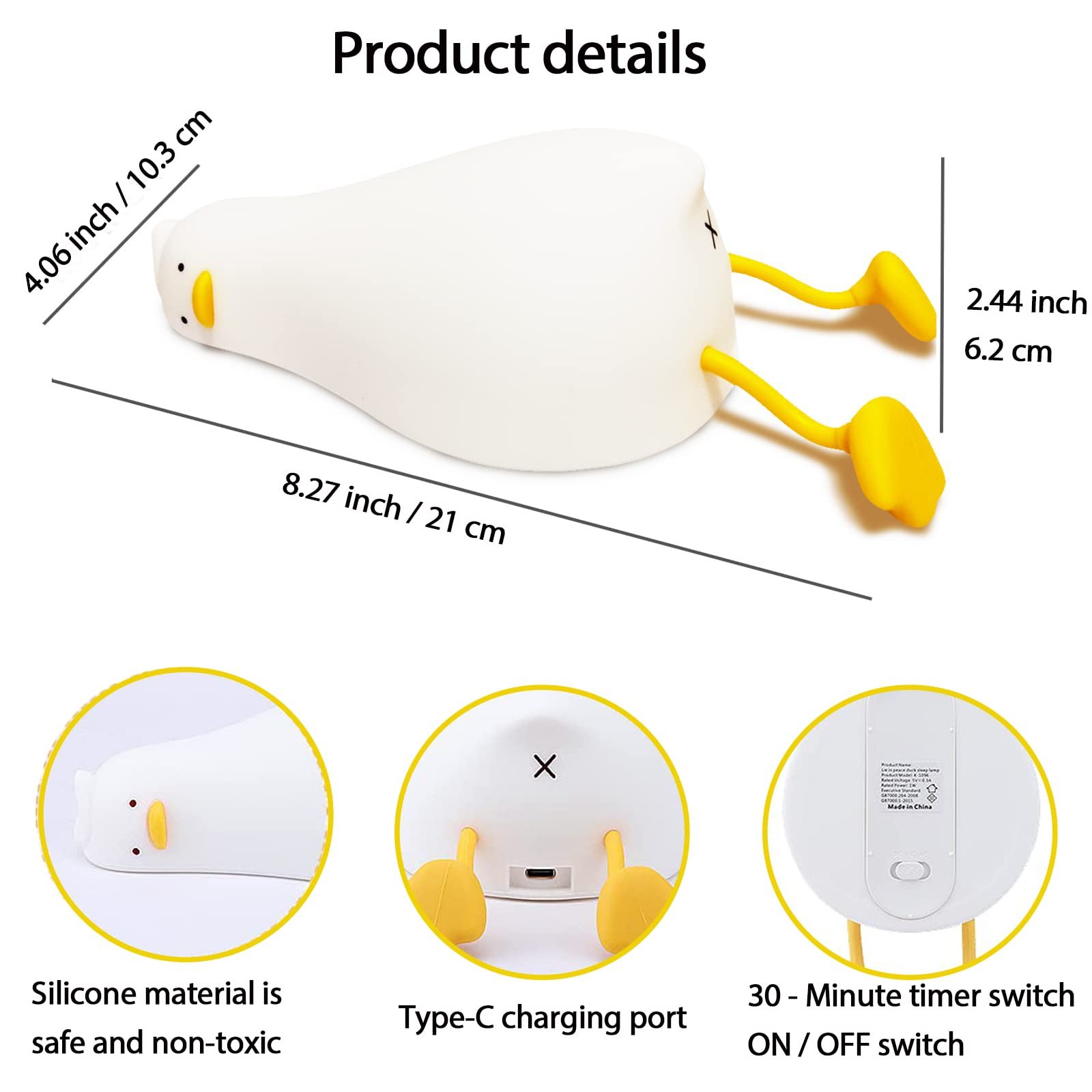 Duck Night Light has a cute animal shape, made of non-toxic baby-safe BPA-free silicone, and the cute lamp is easy to carry and not easy to