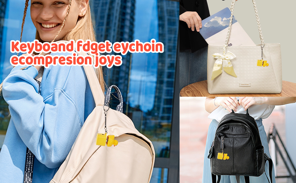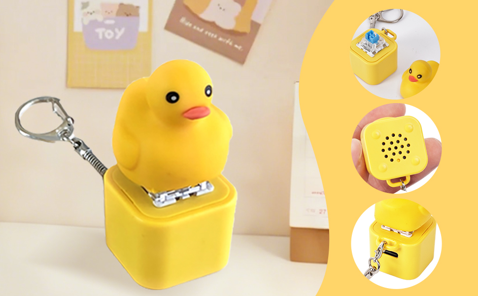 - Duck Keyboard Fidget Keychain: This adorable yellow keyboard fidget toy produces a clear and satisfying quack sound, helping to release anxiety and stress instantly. Ideal for quick mental breaks and relaxation.